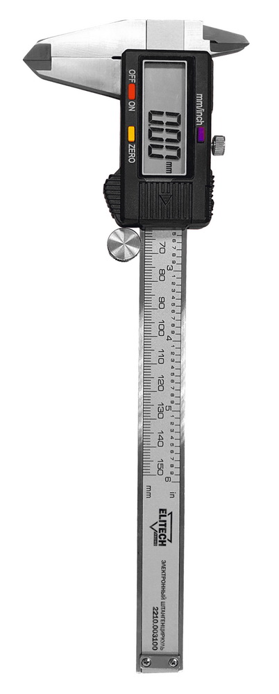 Штангенциркуль цифровой с дисплеем. Металлические губки. Выбор единицы измерения (дюймы или миллиметры). Измеряет внутренние и наружные диаметры, глубину отверстий. Питание от одного элемента питания LR44.