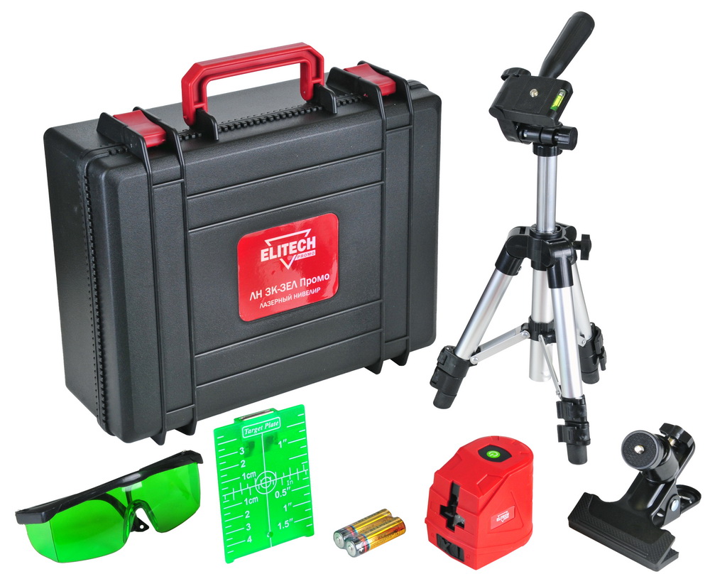 Лазерный нивелир ELITECH ЛН 3К Промо (Е0306.013.00) с автоматическим самовыравниванием проецирует горизонтальную и вертикальную линии с образованием точки пересечения этих линий. Есть возможность отключить самовыравнивание для проецирования наклонных линий. Зеленые линии, с возможностью регулировки яркости луча, лучше видно в условиях яркой освещенности. Дальность работы до 15 метров. Элевационный штатив в комплекте позволяет установить лазерный нивелир на необходимом уровне и дает возможность производить разметку гораздо точнее и удобнее. Нивелир применяется для разметки при строительстве, ремонте и отделке помещений, установке оборудования и бытовой техники, а также последующего контроля выполненных работ. Используется в помещение и на открытом воздухе. Типовые примеры в бытовом использовании - выравнивание стен, пола и потолков, укладка плитки, оклейка обоев, разметка отверстий при установке шкафов, бытовой техники и других конструкций, требующих строго горизонтального или вертикального размещения, проверка и разметка уровня пола, потолка и других аналогичных действий.