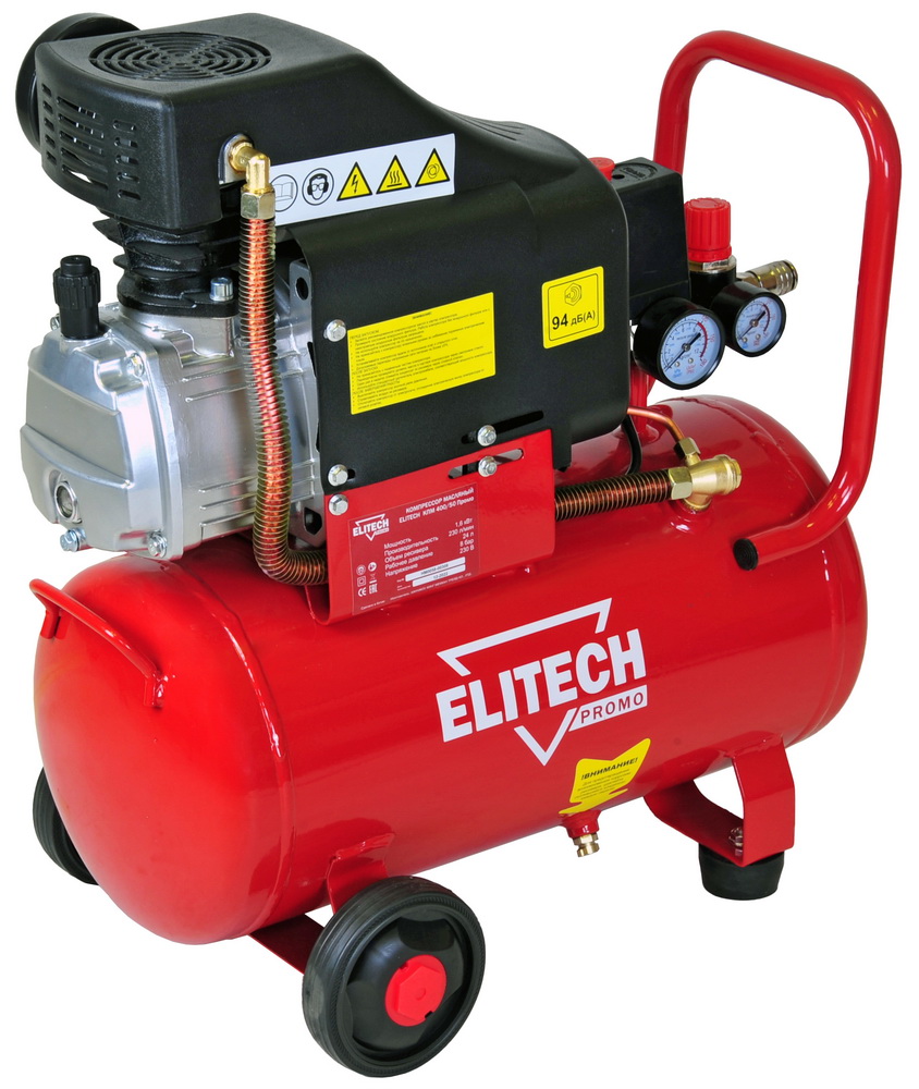 ELITECH КПМ 400/50 Промо Коаксиальный масляный компрессорс рессивером объемом 50 литров. Один быстросъемный разъем рапид, один выход елочка 8мм с вентилем. Синхронный (щеточный) двигатель. Два манометра для контроля давления в рессивере и на выходе. Регулировка давления воздуха на выходе.