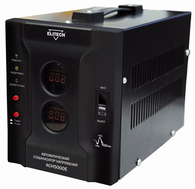 Стабилизатор напряжения ELITECH АСН 5000Е обеспечивает постоянную и полную защиту электроприборов и электрооборудования от перепадов напряжения электросети.