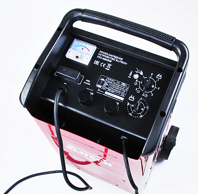 Пускозарядное устройство УПЗ 600/540 для автомобильных свинцовокислотных батарей. Работает от сети 230В. Оснащено переключателем для выбора режима нормальной и быстрой зарядки. Шесть режимов тока зарядки 15А, 23А, 31А, 40А, 50А, 60А. Таймер для выбора продолжительности зарядки от 0 до 60 минут. Зарядное устройство снабжено предохранителем выходного и входного тока.