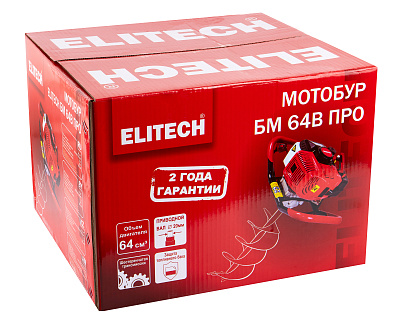 Мотобур бензиновый БМ 64В Промо с двухтактным двигателем воздушного охлаждения предназначен для бурения грунта и льда шнеком диаметром от 40 мм до 200 мм на глубину до 1,8 метров.При эксплуатации мотобура необходимо правильно выбрать тип шнека (для грунта, для мерзлого грунта или для льда).Шнеки для разных типов грунта отличаются режущей головкой.Шнек в комплектацию мотобура не входит.