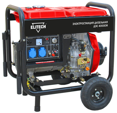 Дизельный генератор ELITECH ДЭС 4000 ЕM - предназначена для работы в качестве автономного источника электроэнергии переменного однофазного тока напряжением 220В, частотой 50 Гц.