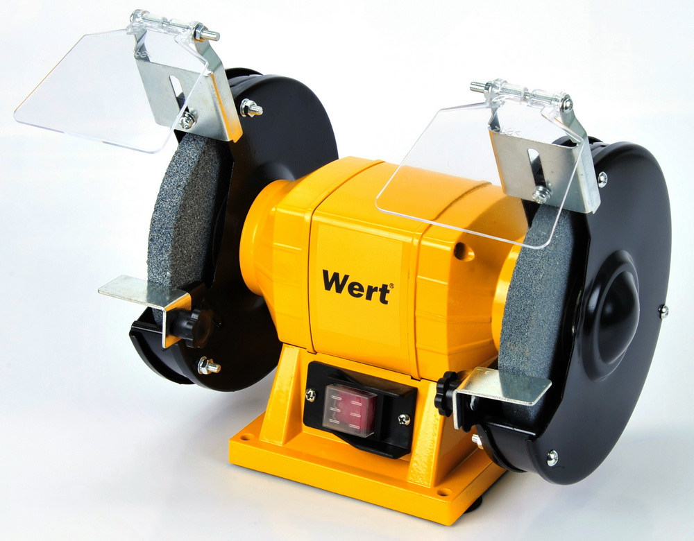 Точильный станок WERT GM 0315 Предназначен для обточки и шлифовки различных предметов, а также заточки дереворежущего, металлорежущего и другого инструмента.