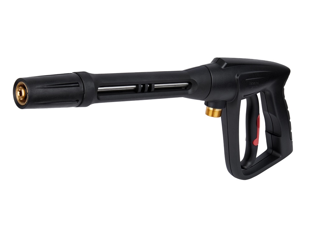 Пистолет ELITECH HD 0910.002800 с щелевой насадкой для мойки высокого давления HPW 3500 присоединяется к шлангу и применяется для управления потоком воды при мойке.
