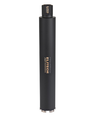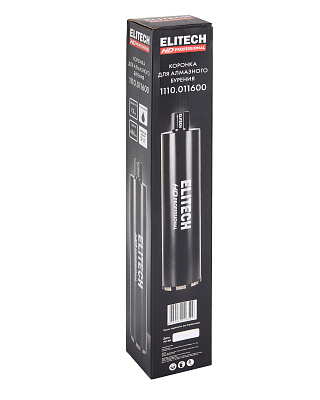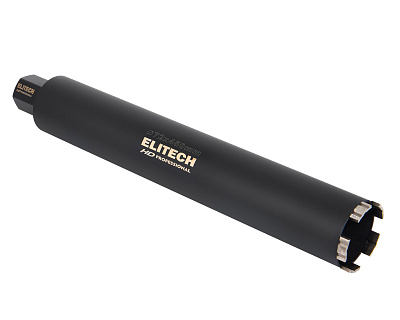 Коронка для алмазного бурения ELITECH HD 1110.011600. Применяется для сухого сверления/бурения с охлаждением твердых материалов, таких как бетон, гранит, мрамор, при использовании установок алмазного бурения. По всей длине корпуса коронки предусмотрена спиральная канавка для лучшего отвода материала из отверсти
