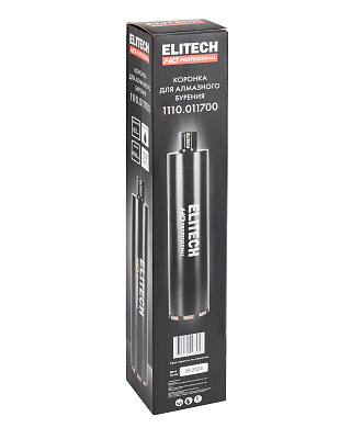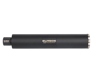 Коронка для алмазного бурения ELITECH HD 1110.011700. Применяется для сухого сверления/бурения с охлаждением твердых материалов, таких как бетон, гранит, мрамор, при использовании установок алмазного бурения. По всей длине корпуса коронки предусмотрена спиральная канавка для лучшего отвода материала из отверсти