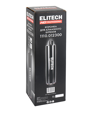 Коронка для алмазного бурения ELITECH HD 1110.012300. Применяется для сухого сверления/бурения с охлаждением твердых материалов, таких как бетон, гранит, мрамор, при использовании установок алмазного бурения. По всей длине корпуса коронки предусмотрена спиральная канавка для лучшего отвода материала из отверсти