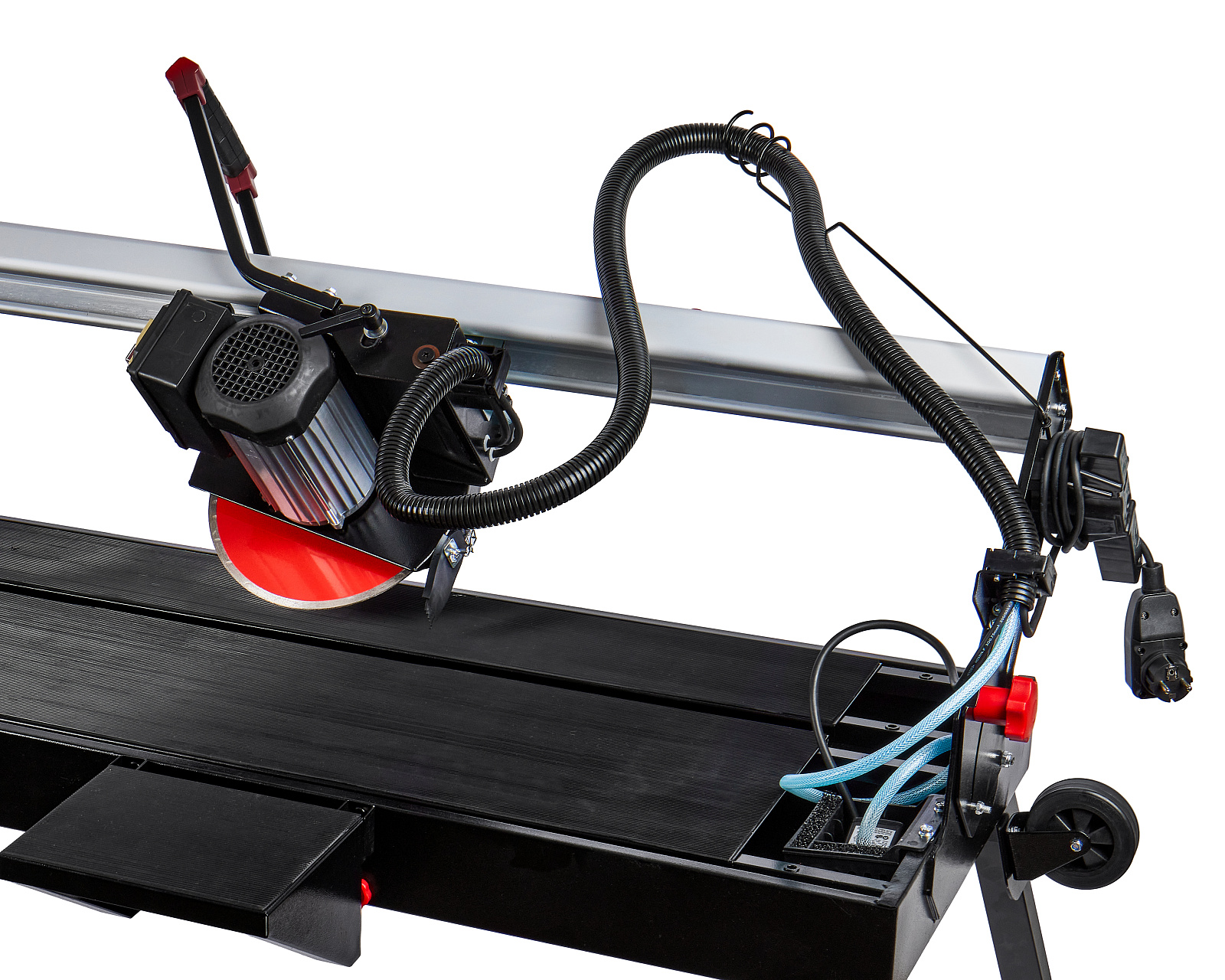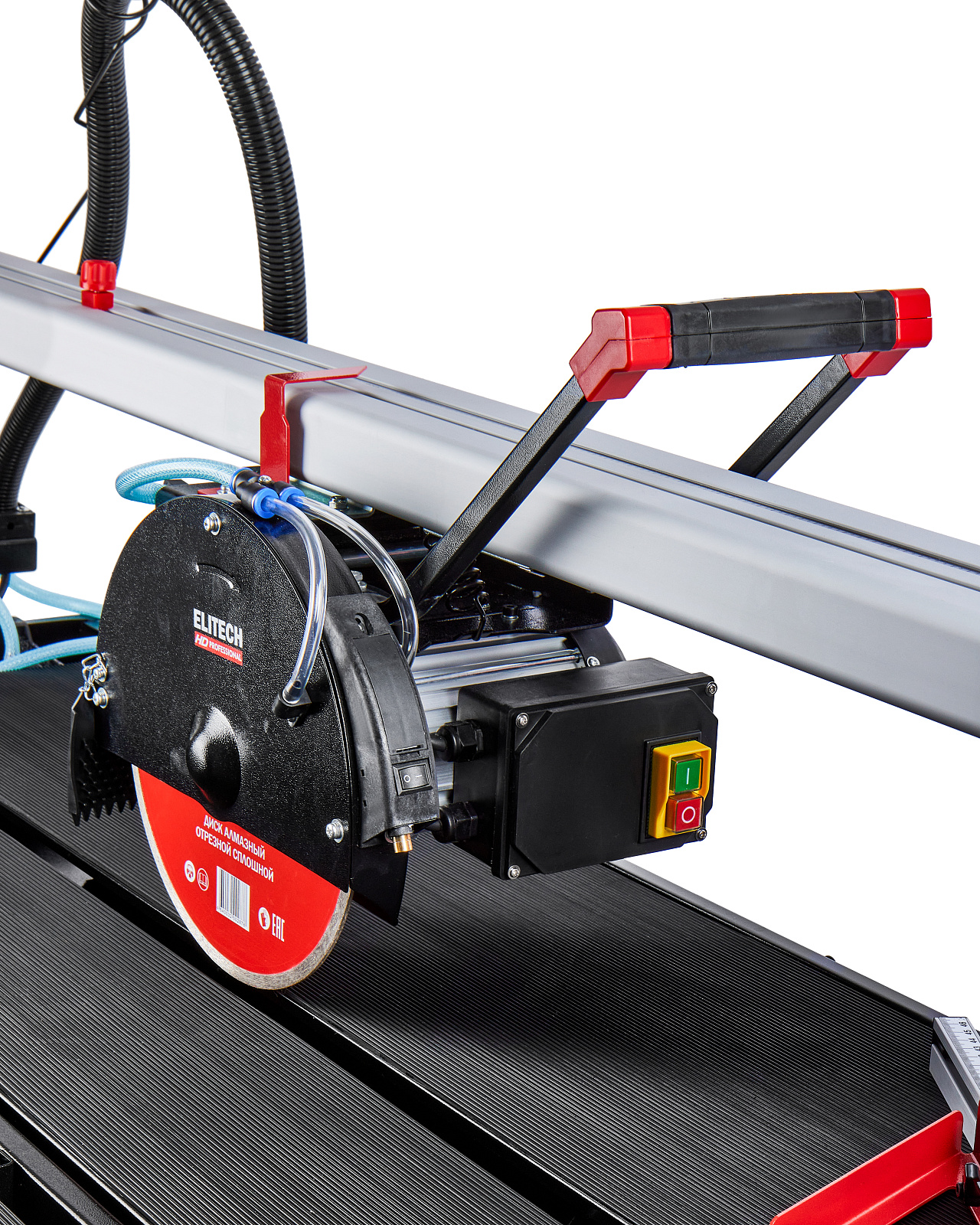 литкорез мощностью 1200 Вт предназначен для резки отрезным алмазным диском диаметром 250 мм в размер всех видов натуральной и искусственной керамической облицовочной, напольной и тротуарной плитки. Рез может выполняться под углом от 45° до 90° к плоскости поверхности плитки за счет наклона диска и под углом от 0° до 45° в горизонтальной плоскости с помощью транспортира, с возможностью комбинации углов.