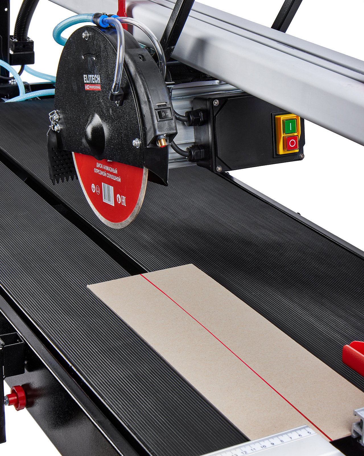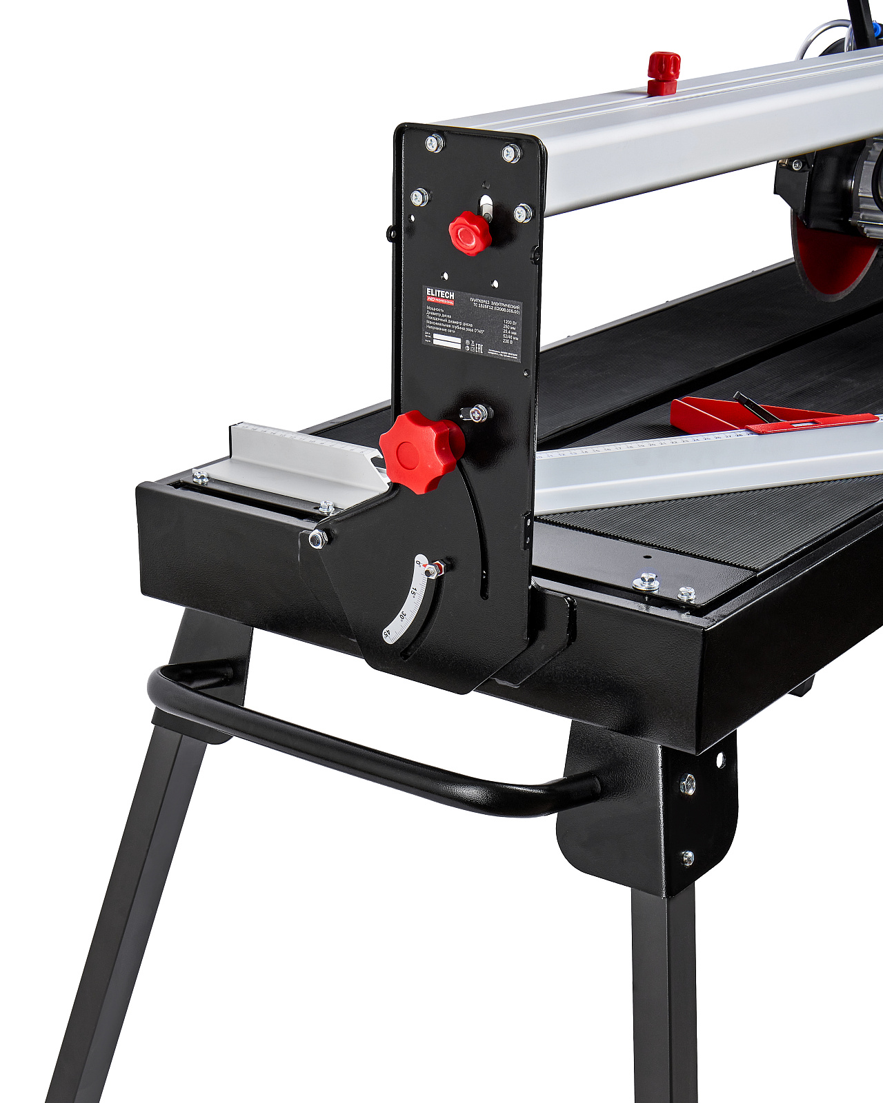 литкорез мощностью 1200 Вт предназначен для резки отрезным алмазным диском диаметром 250 мм в размер всех видов натуральной и искусственной керамической облицовочной, напольной и тротуарной плитки. Рез может выполняться под углом от 45° до 90° к плоскости поверхности плитки за счет наклона диска и под углом от 0° до 45° в горизонтальной плоскости с помощью транспортира, с возможностью комбинации углов.