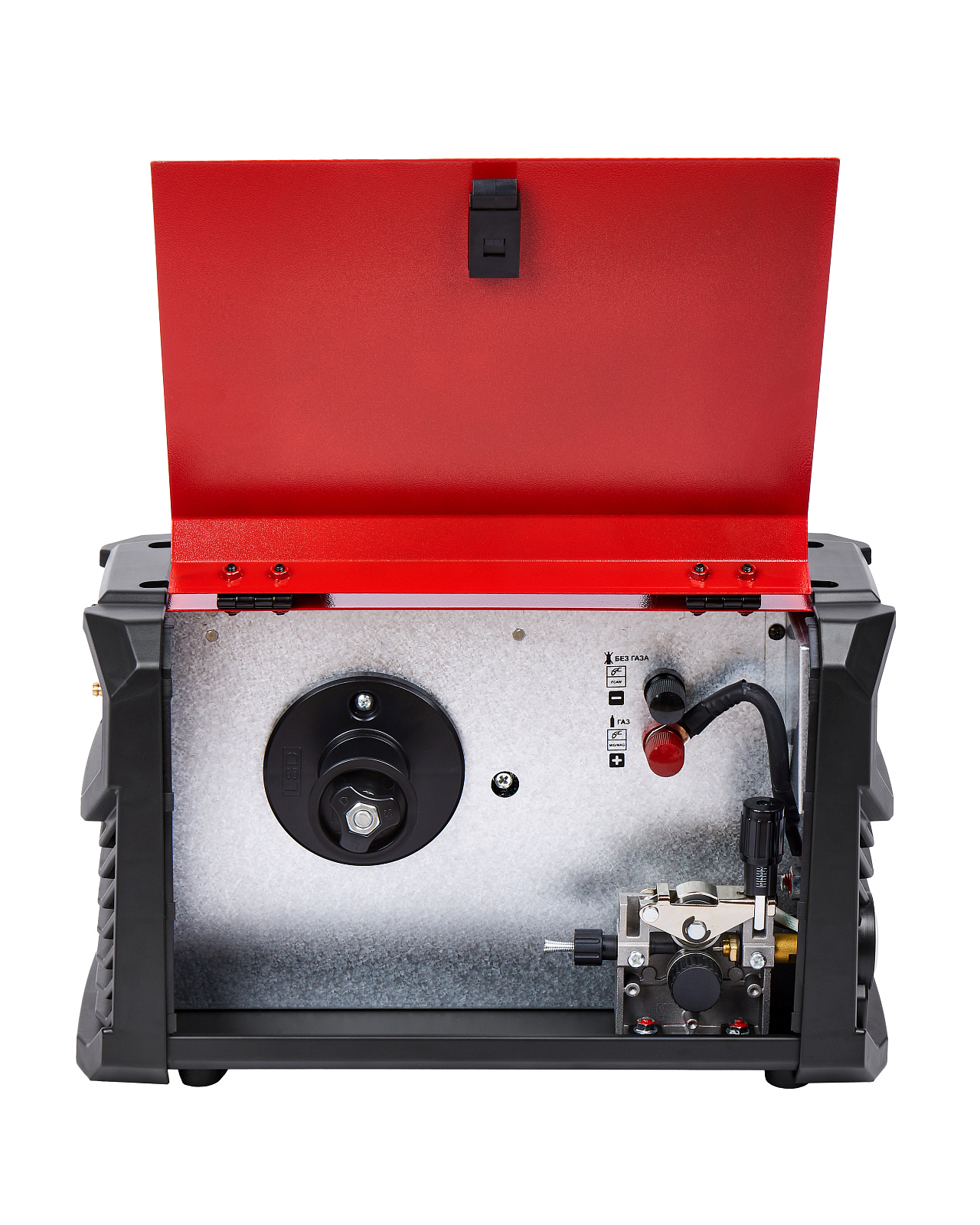 Сварочный инвертор полуавтоматической сварки (MIG/MAG) с дополнительными функциями аргоно-дуговой сварки TIG и сварки плавящимся электродом ММА. Оснащен евроразъемом MIG/MAG и двумя клеммами Dх25. Инвертор оснащен цифровым LED дисплеем для контроля параметров сварки. Сварка с газом и без газа порошковой проволокой. Максимальная маса катушки 5кг.Пониженное напряжение холостого хода VRD.