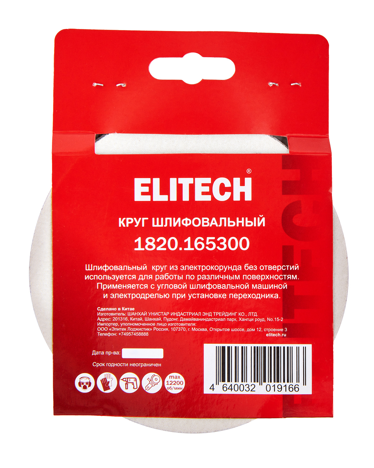 Круг шлифовальный универсальный без отверстий ELITECH 1820.165300 204994