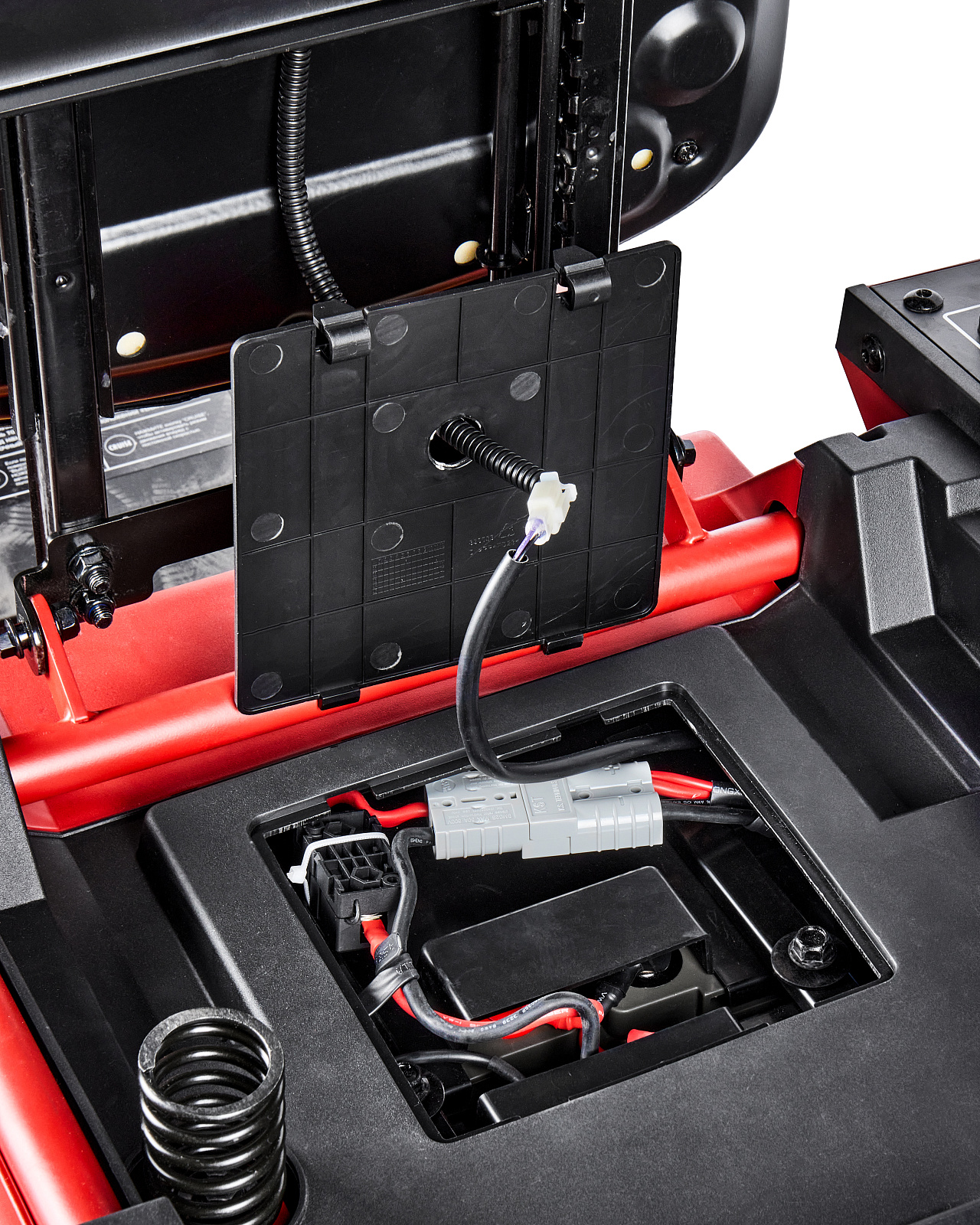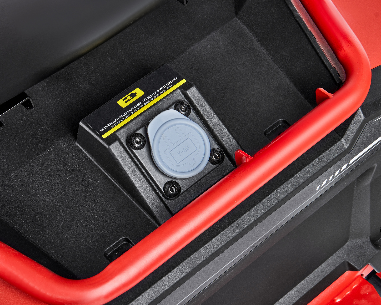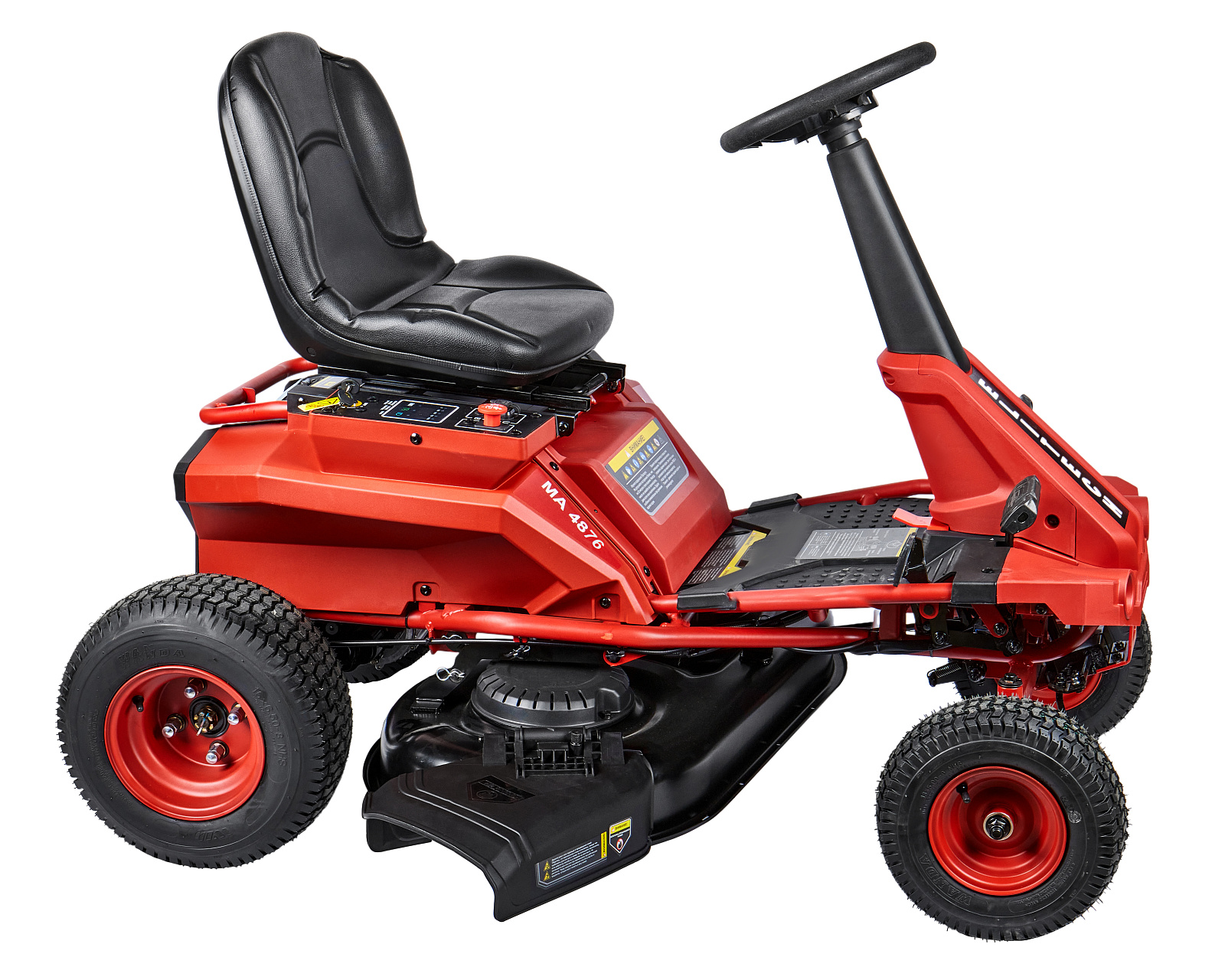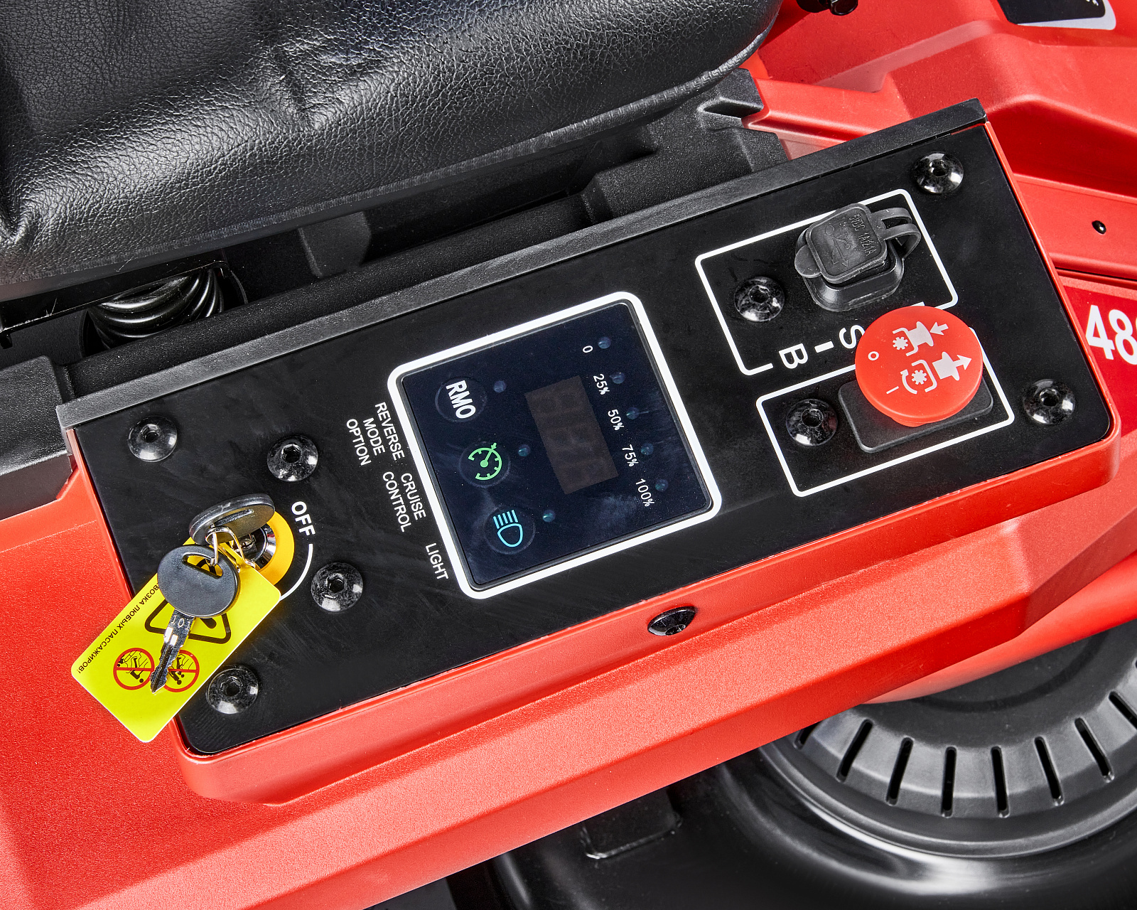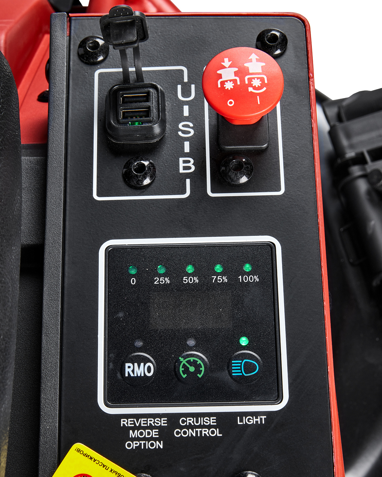 Аккумуляторная газонокосилка с сиденьем оснащена свинцово-кислотным аккумулятором напряжением 48 В и ёмкостью 50 Ач и предназначена для кошения травы на систематически обрабатываемой и предварительно подготовленной поверхности (газон, лужайка, поле для игр и т.п.) с уклоном не более 15 градусов, на участках до 4000 м2, в стандартной комплектации с выбросом скошенной травы вбок, либо кошением травы в режиме мульчирования, когда скошенная трава является удобрением для вновь растущей.
