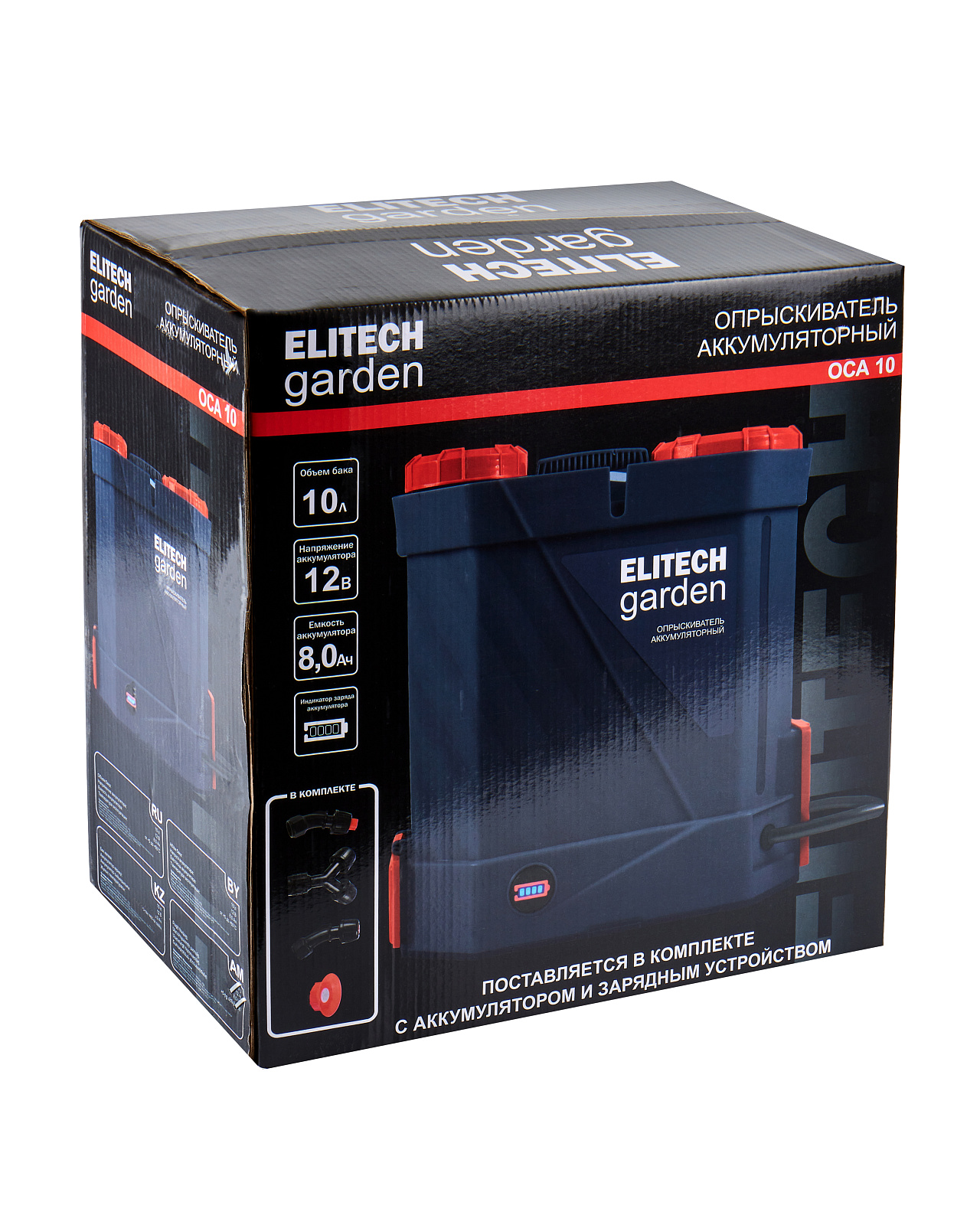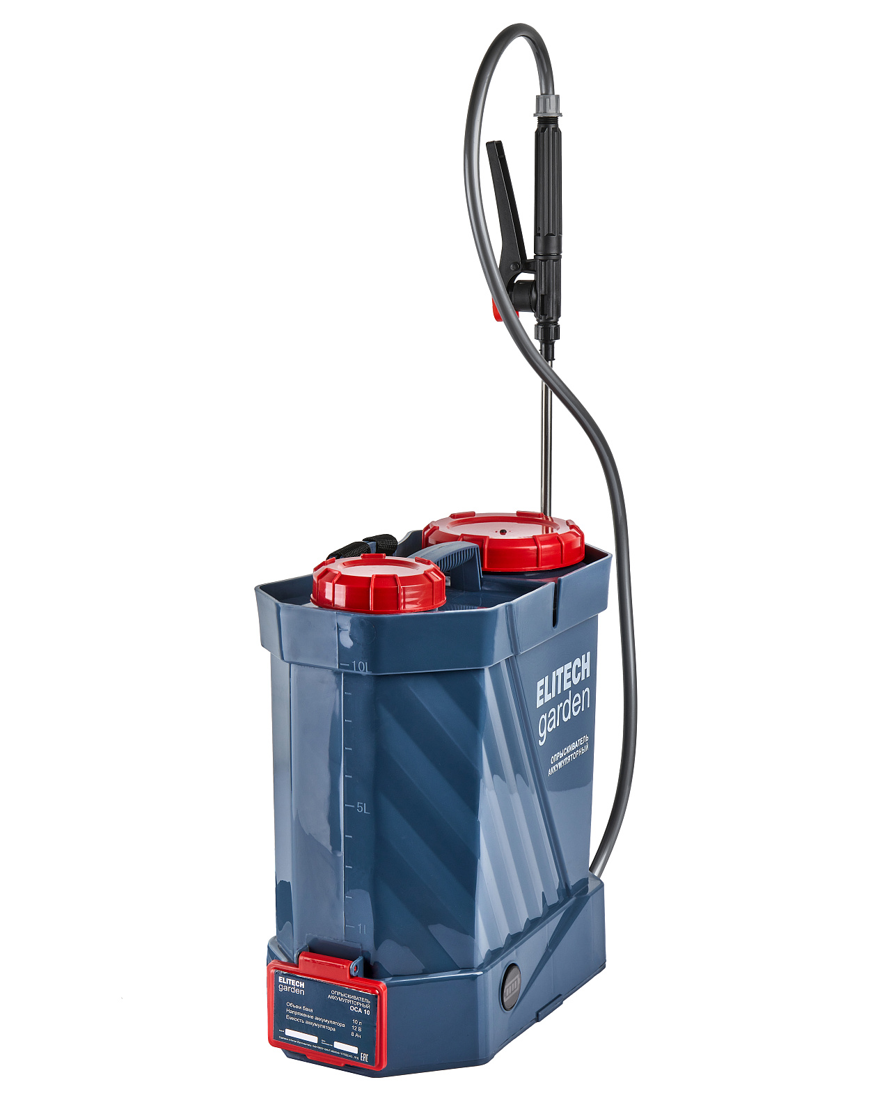 Аккумуляторный ранцевый опрыскиватель ОСА с баком на 10 литров и четырьмя сменными форсунками, применяется для распыления жидкостей при мойке и увлажнении поверхностей, полива и обработки растений, в том числе полностью растворимыми в воде химическими и биологическими препаратами (пестицидами).