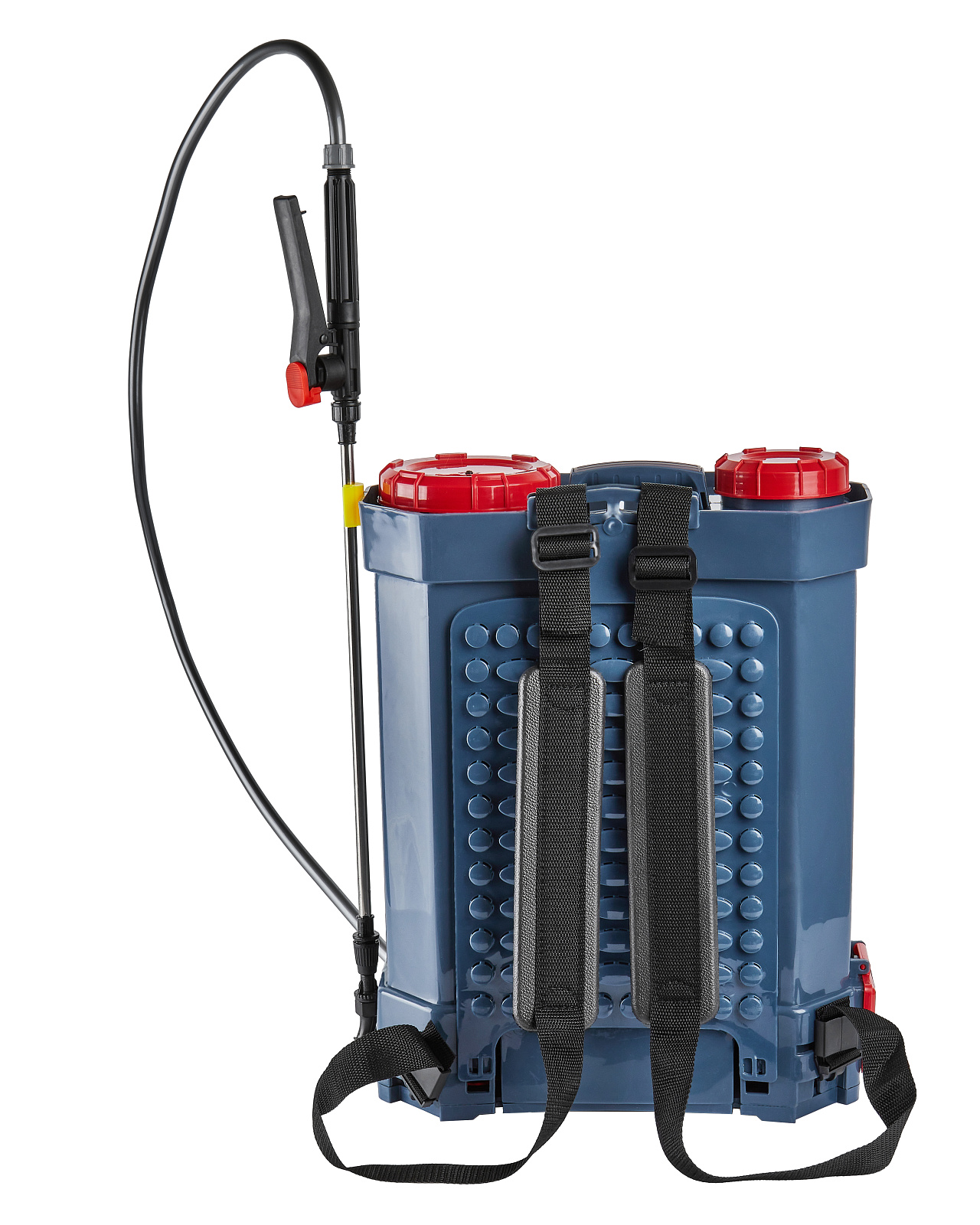 Аккумуляторный ранцевый опрыскиватель ОСА с баком на 16 литров и четырьмя сменными форсунками, применяется для распыления жидкостей при мойке и увлажнении поверхностей, полива и обработки растений, в том числе полностью растворимыми в воде химическими и биологическими препаратами (пестицидами).