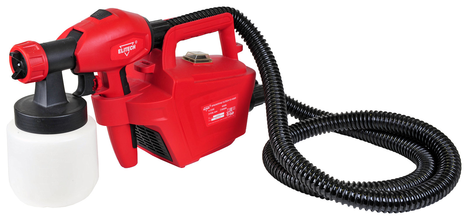Краскопульт электрический компрессорного типа мощностью 600 Вт с диаметром сопла 1,8 и 2,6 мм, предназначен для распыления эмалевых и водоэмульсионных красок, грунтовок, прозрачных лаков, морилок, средств защиты древесины, масел, дезинфицирующих средств на основе растворителей и воды. Краскопульт эксплуатируется в районах с умеренным климатом, в температурном диапазоне от +1°С до +40°С и относительной влажности воздуха не более 80%.
