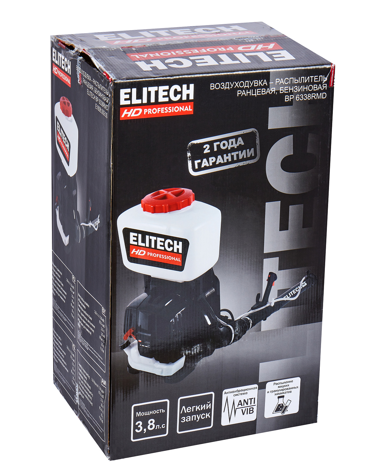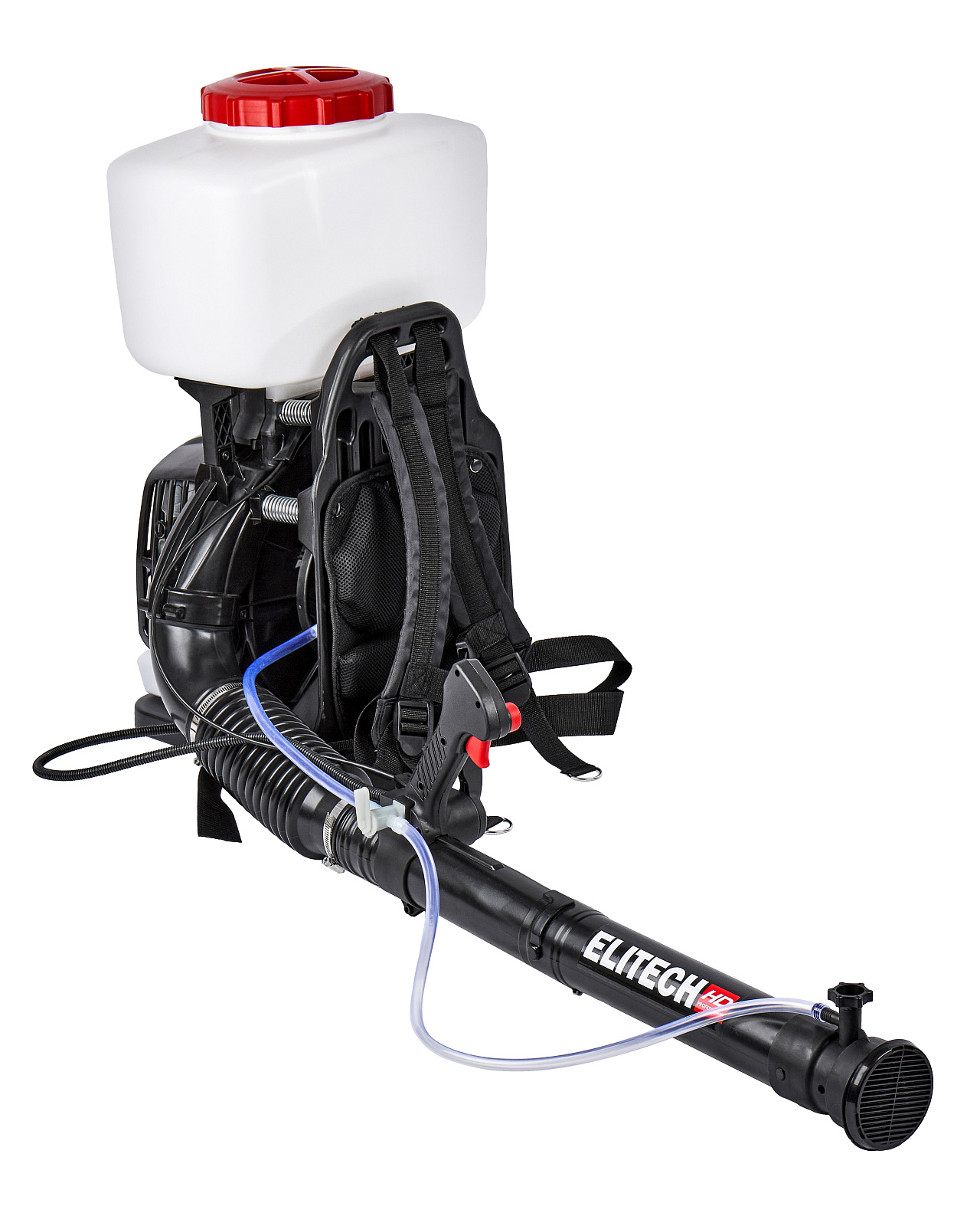 Бензиновая воздуходувка-распылитель мощностью 3,8 л.с. и объемом бака для химикатов 25 л, предназначена для создания направленного воздушного потока скоростью до 85 м/с, изменяемого по скорости и интенсивности, необходимого для распыления химикатов и удобрений, гранулированных и жидких, из бака, который является частью конструкции. Без распыления воды и жидкости, устройство может быть использовано для уборки территорий от листвы и растительного мусора, например, после кошения газона или ухода за живыми изгородями.