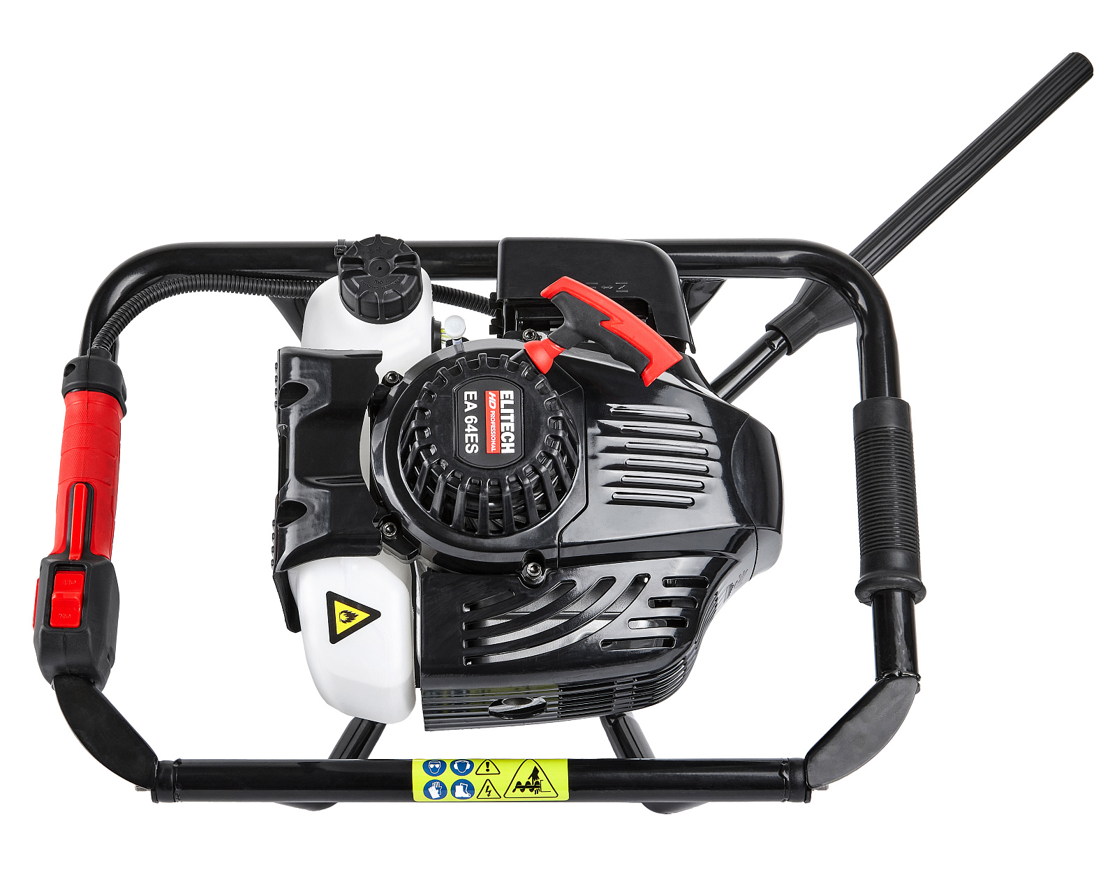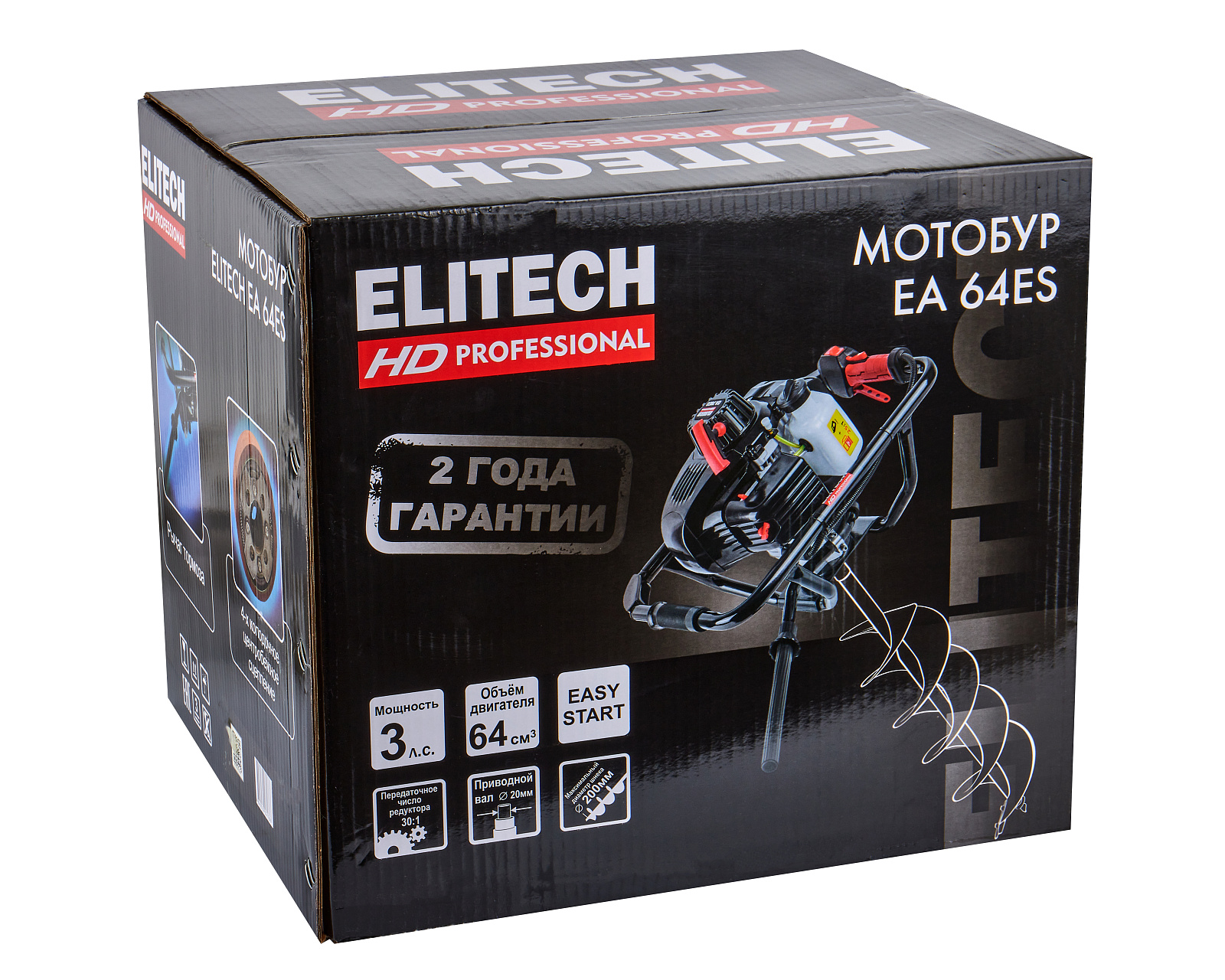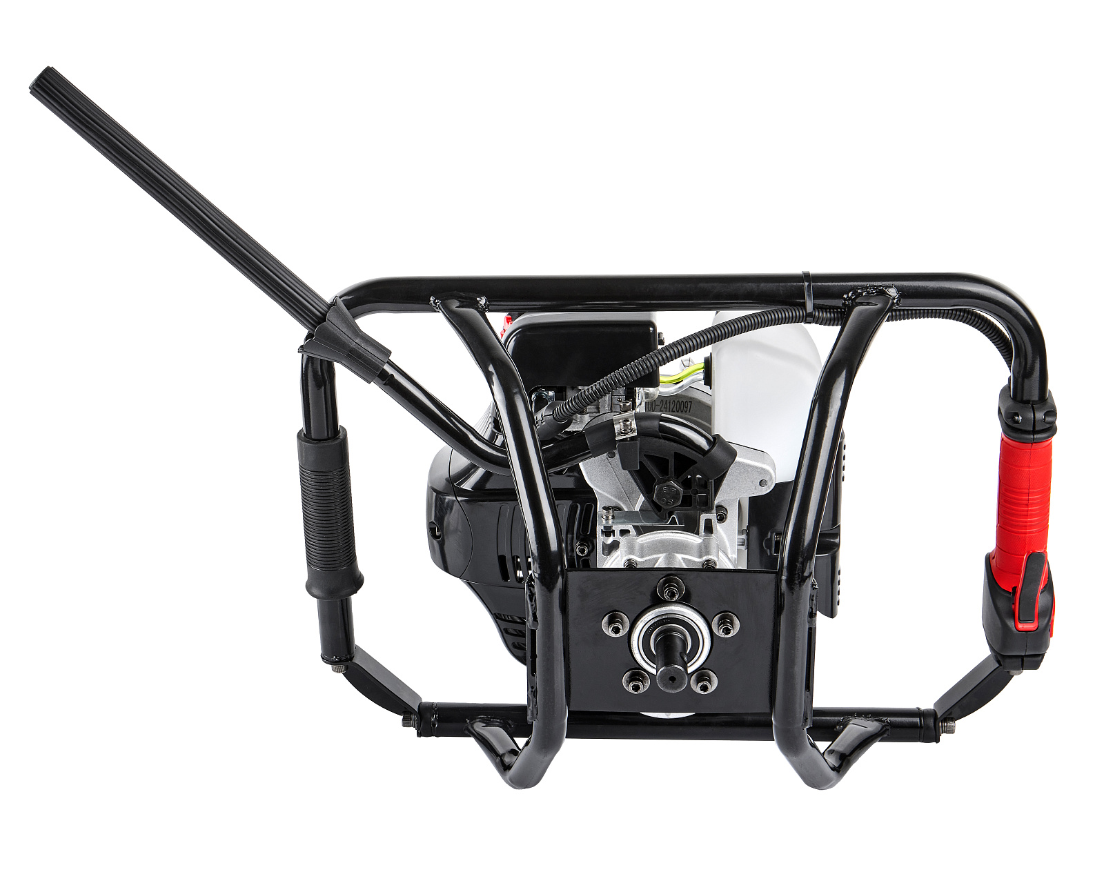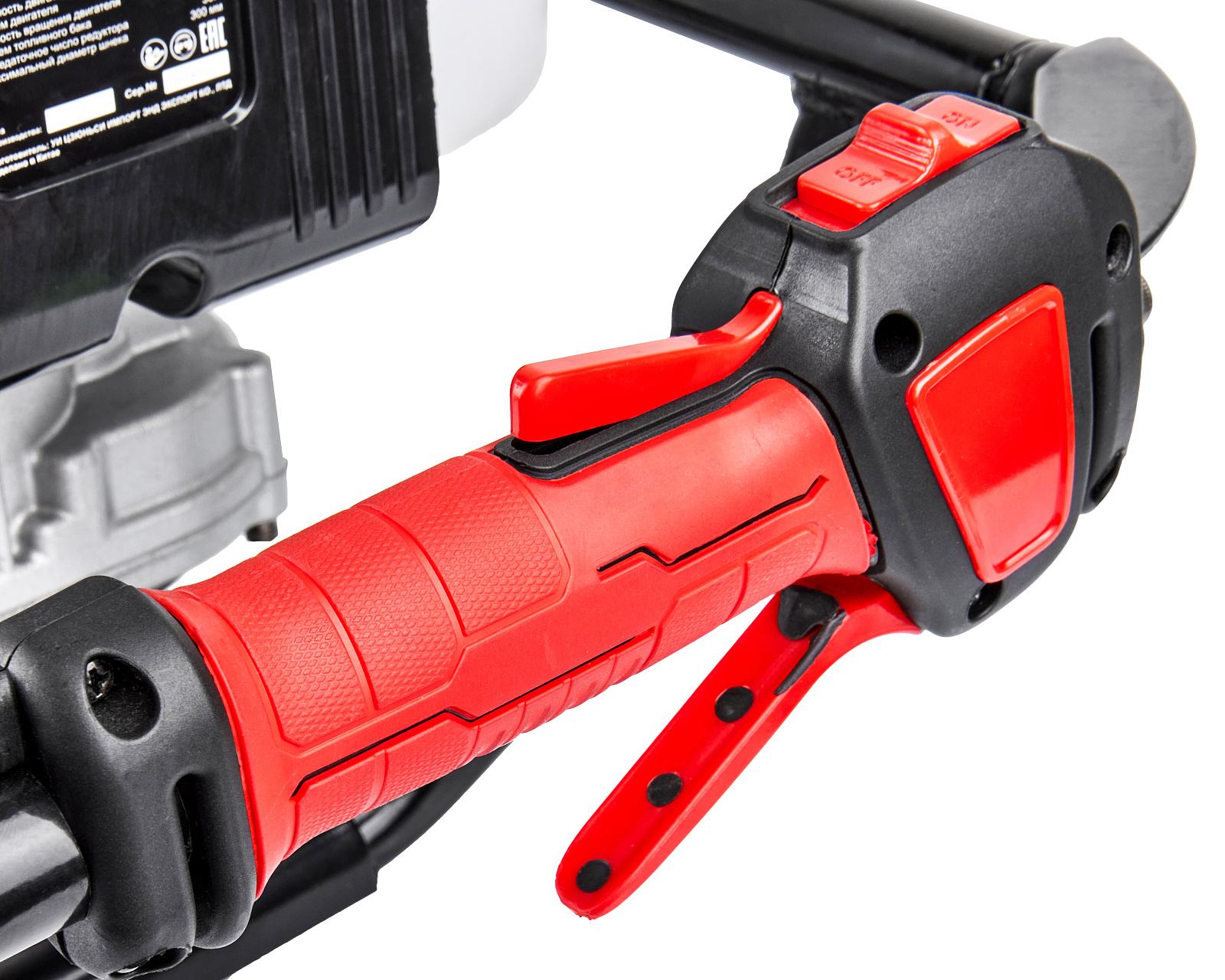 Бензиновый мотобур с двухтактным двигателем мощностью 3 л.с. (2,2 кВт) и передаточным числом редуктора 30 к 1, предназначен для бурения грунта и льда шнеком диаметром от 40 мм до 200 мм на глубину до 1,8 метров. При эксплуатации мотобура необходимо правильно выбрать тип шнека (для грунта, для мерзлого грунта или для льда). Шнеки для разных типов грунта отличаются режущей головкой.