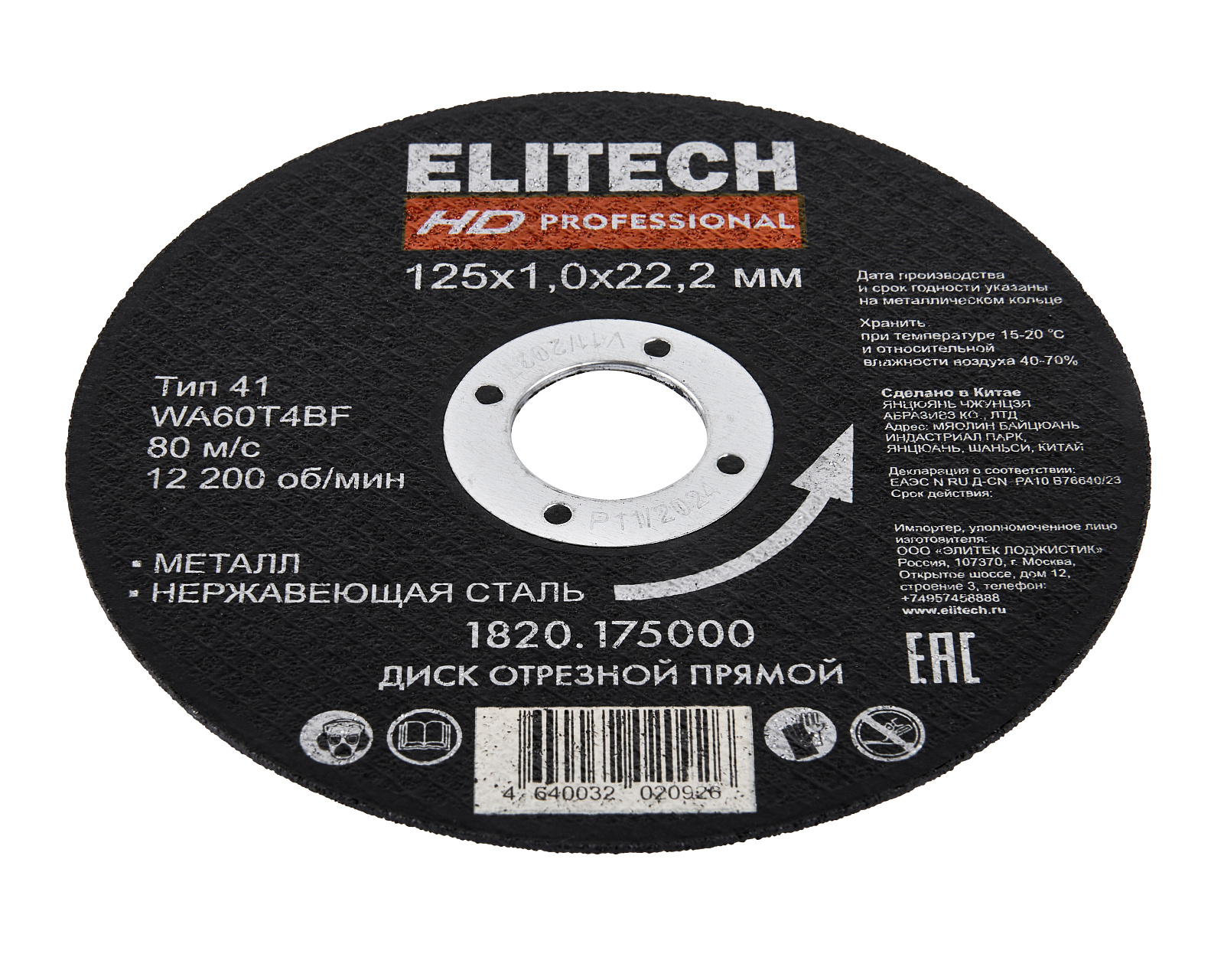 Диск отрезной125х1,0 сталь ELITECH HD 1820.175000 205585