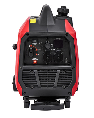 Инверторный генератор (электростанция) мощностью 3,2 кВт (макс. 3,5 кВт) с 4-х тактным бензиновым двигателем, предназначен для работы в качестве автономного источника электроэнергии переменного однофазного тока напряжением 230В, частотой 50Гц. Генератор снабжен двумя розетками на 16 А, двумя выходами USB: 5В/1А, 5В/2,1А; мультиметром, а также тележкой для перевозки с выдвижной ручкой.