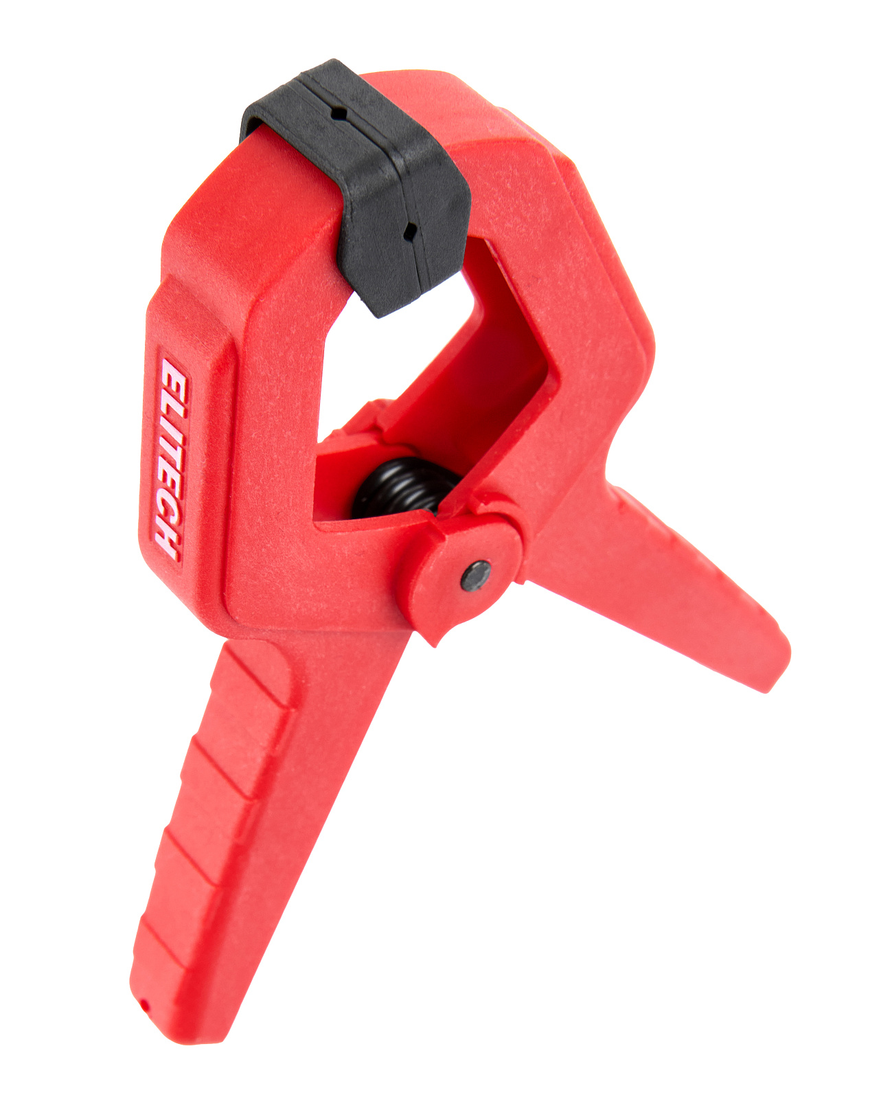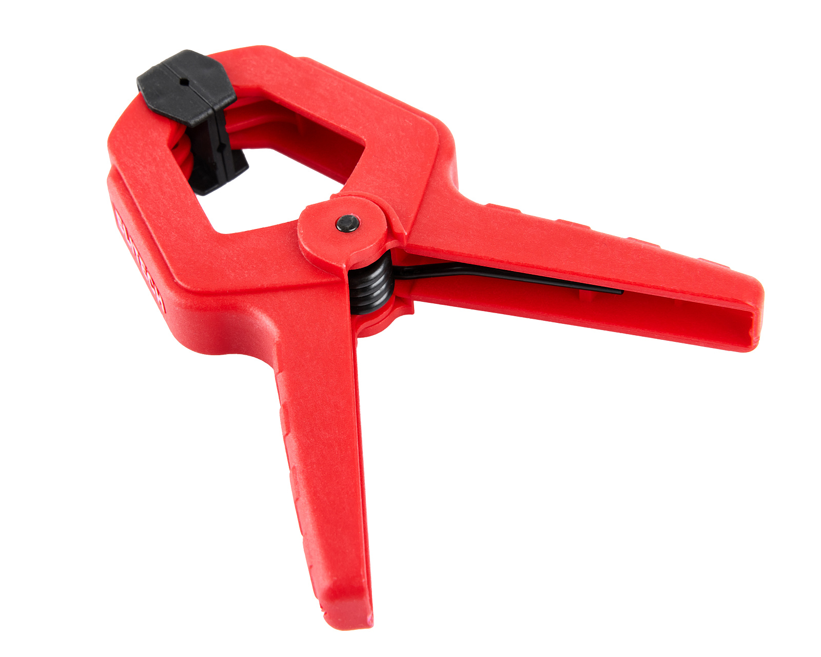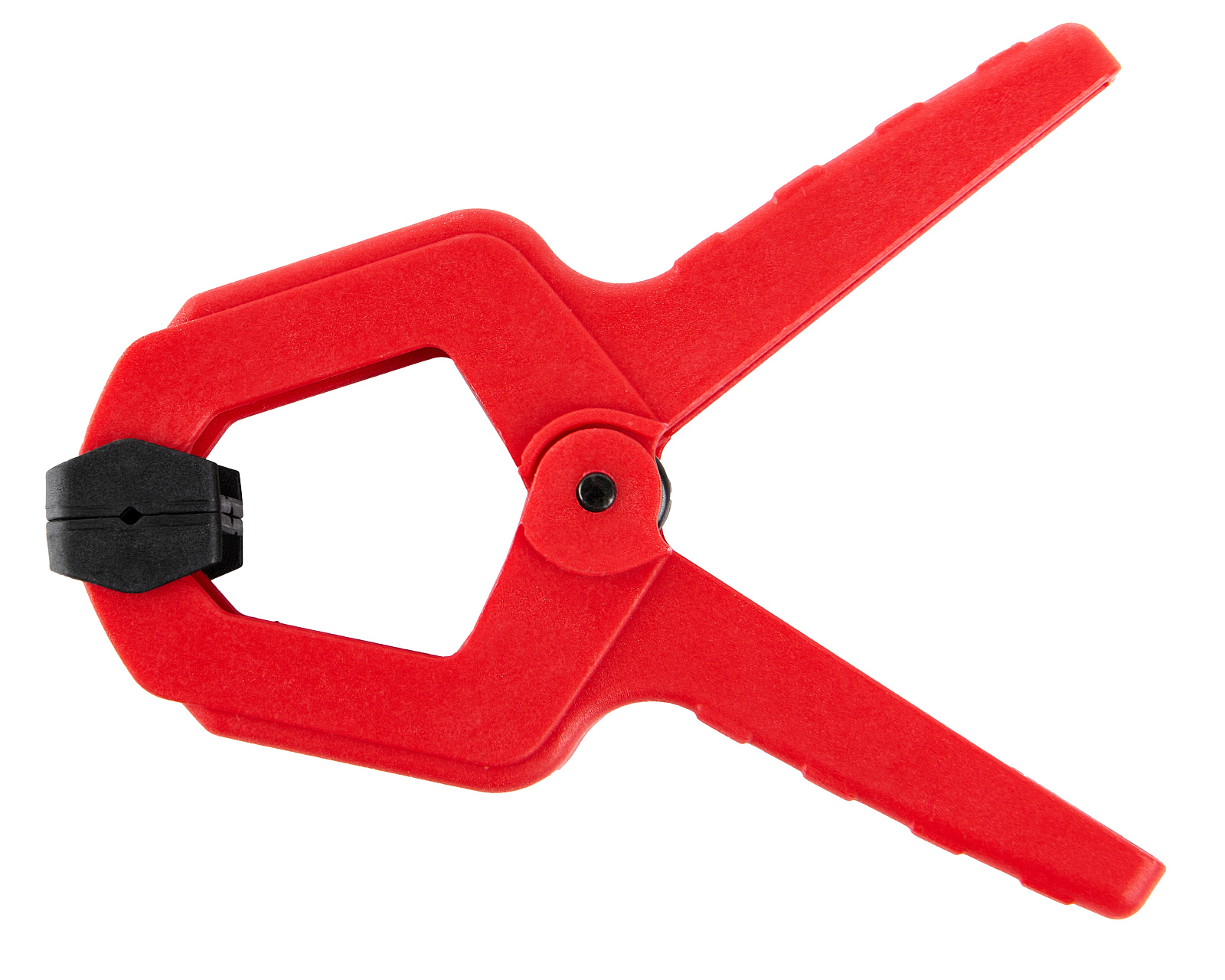 Пружинная пластиковая струбцина ножничного типа с плоскими поворотными губками, с силой зажима 45 Н (4,5 кг), используется для быстрой фиксации деталей и заготовок. Ширина зажима 40 мм Глубина зажима 30 мм Усилие на сжатие 45 Н