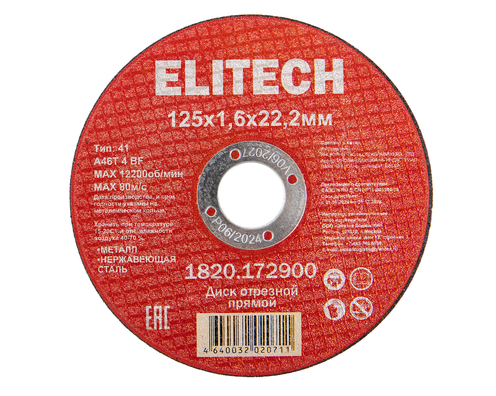 Диск отрезной125х1,6 сталь ELITECH 1820.172900 205564