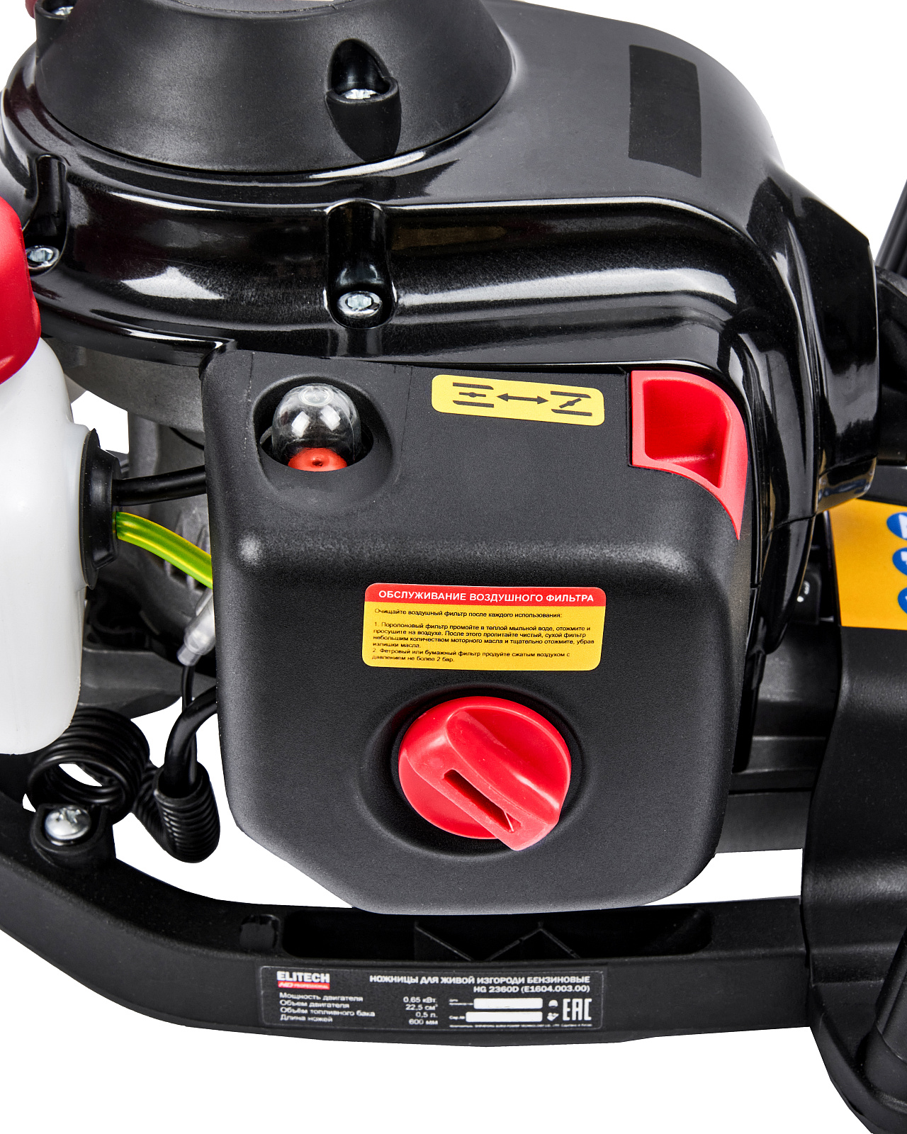 Бензиновые ножницы для живой изгороди мощностью 0,9 л.с. (0,65 кВт), предназначены для стрижки кустарников и живых изгородей, для придания форм садовым растениям.