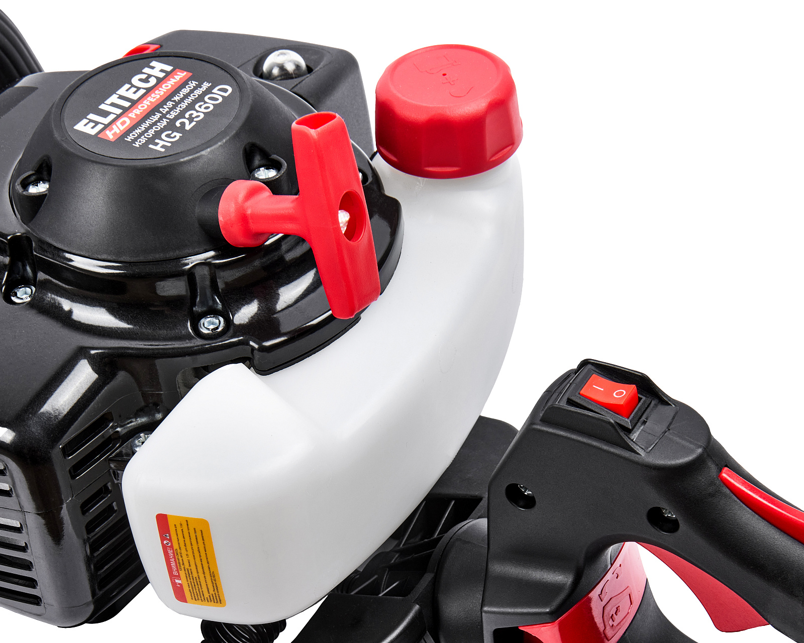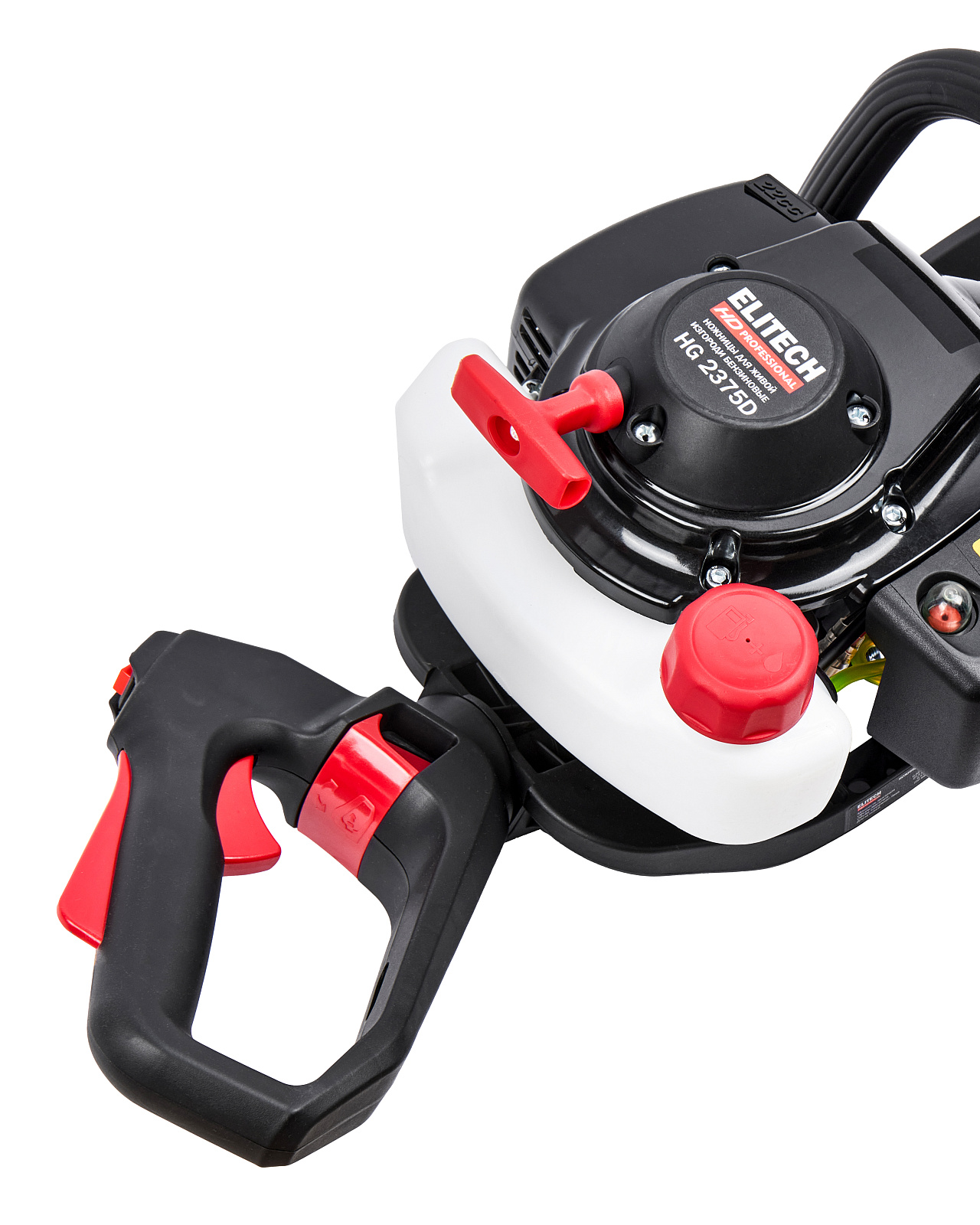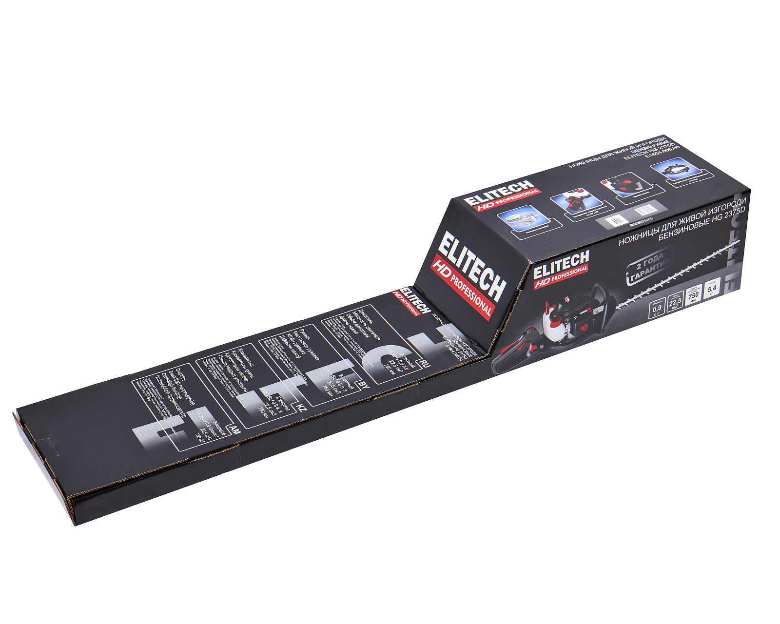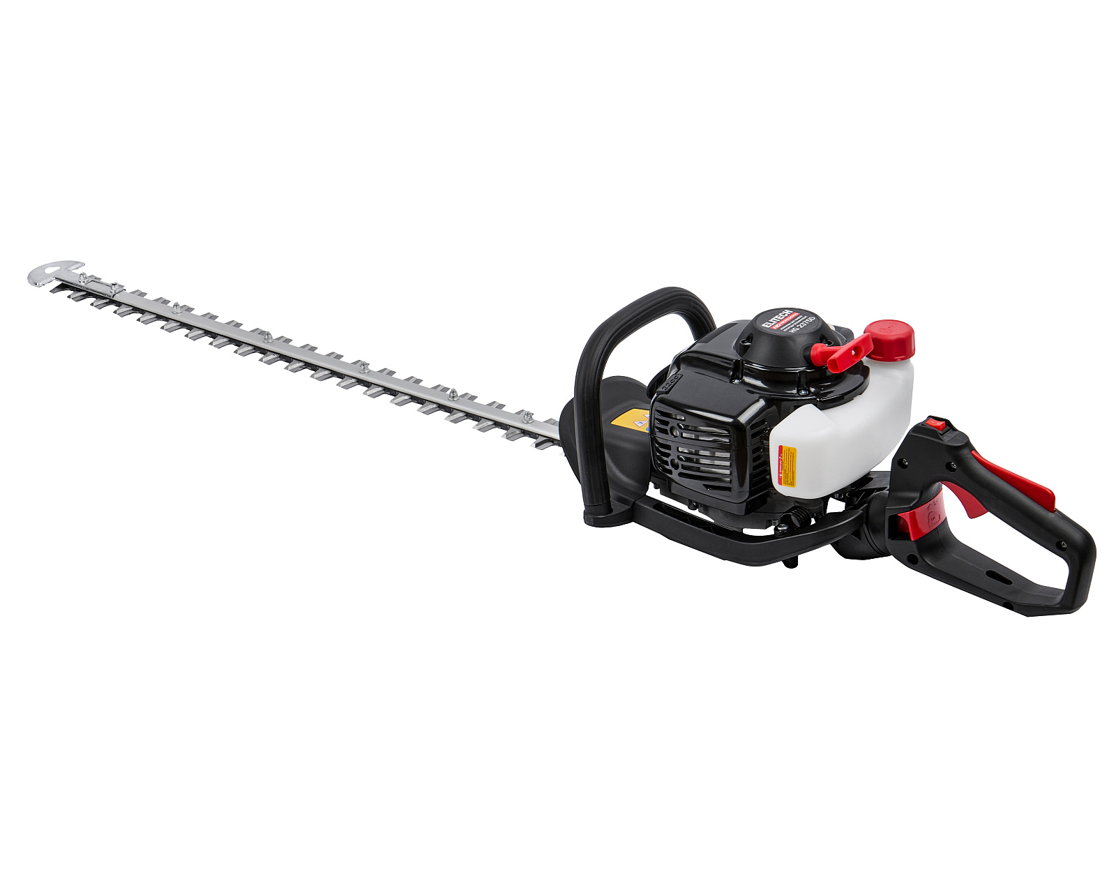 Бензиновые ножницы для живой изгороди мощностью 0,9 л.с. (0,65 кВт), эргономичной конструкции, с низкооборотистым двигателем современной конструкции, работающим на топливной смеси в пропорции 1:50, обеспечивающим высокий крутящий момент и длительный срок эксплуатации, с двухсторонними ножами длиной 750мм, с лазерной заточкой и поворотной задней рукояткой (5 положений).