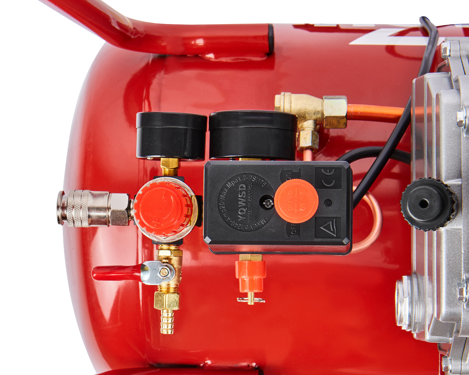 Компрессор коаксиальный масляный мощностью 1,5 кВт, с ресивером на 24 литра и производительностью на входе 240 л/мин, предназначен для подачи технического сжатого воздуха и используется для накачки шин автомобиля, продувки сжатым воздухом, покрасочных работ с использованием пневматических краскопультов, мовильных пистолетов и т.п. Режим работы компрессора повторно-кратковременный при температуре от +5°С до +40°С.