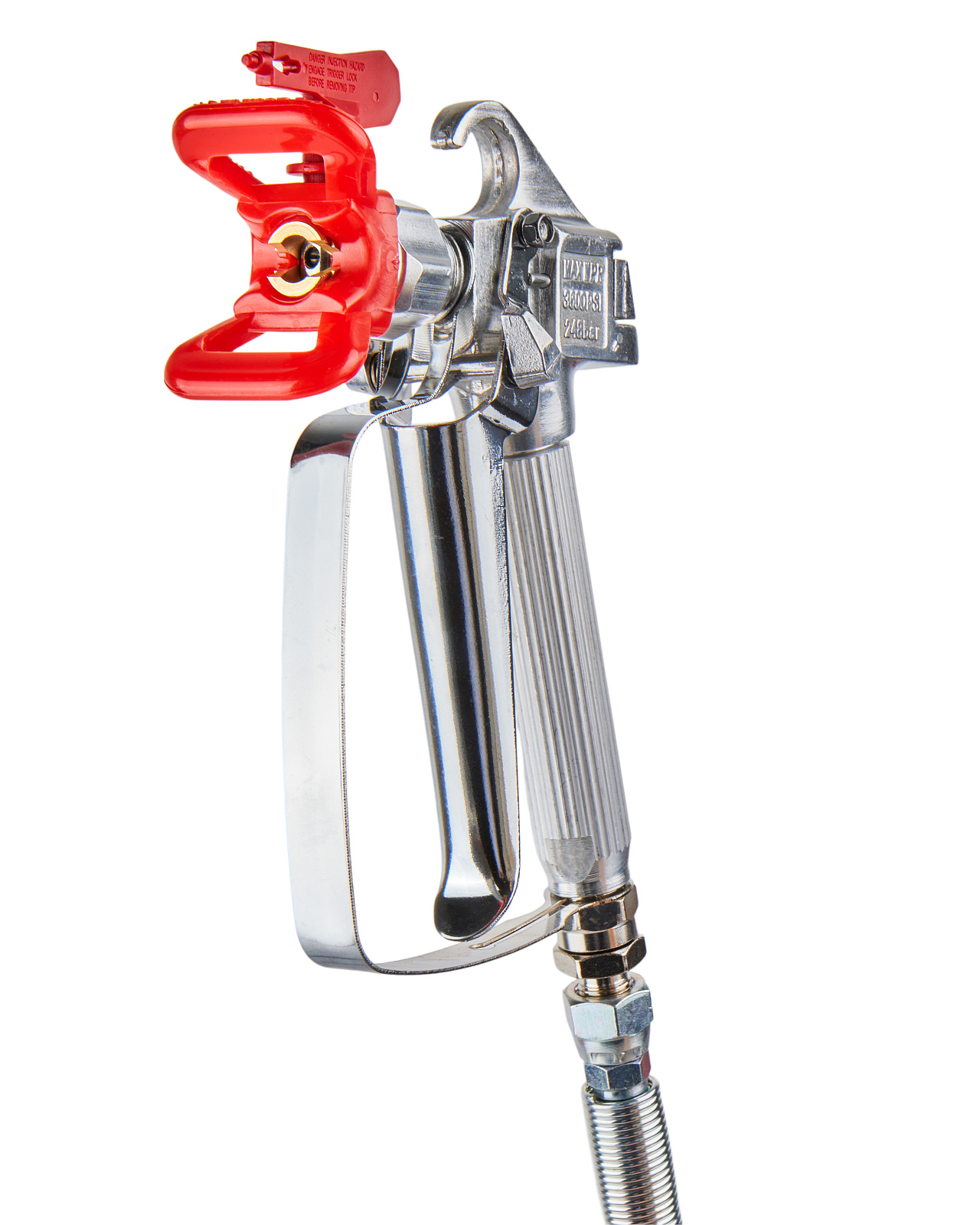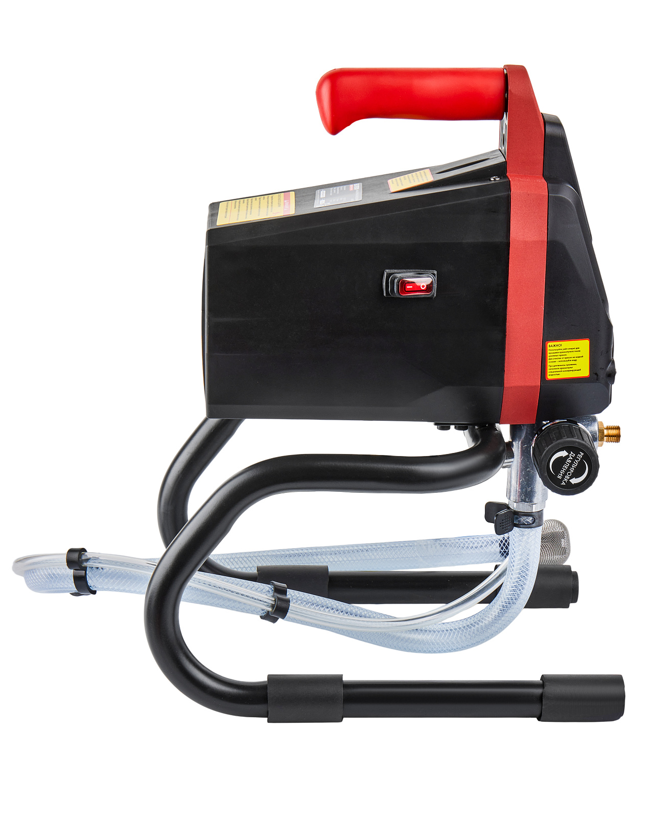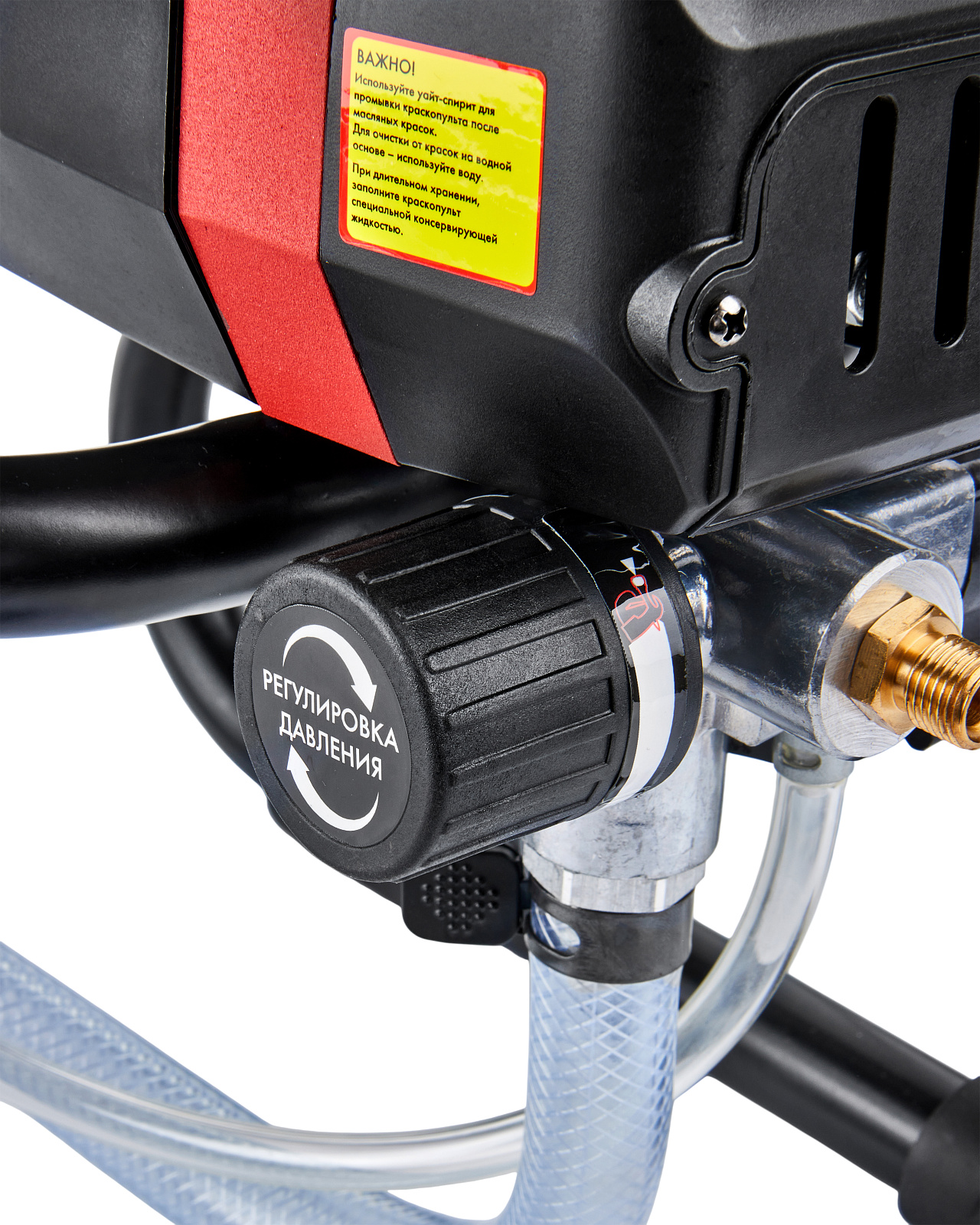 Краскопульт электрический безвоздушный мощностью 1000 Вт и производительностью 1,8 л/мин, представляет собой электрический аппарат для распыления под высоким давлением в 210 бар лакокрасочных материалов максимальной вязкостью до 100 DIN, с помощью встроенного электрического насоса. Используется при строительно-отделочных работах для окраски поверхностей большой площади.