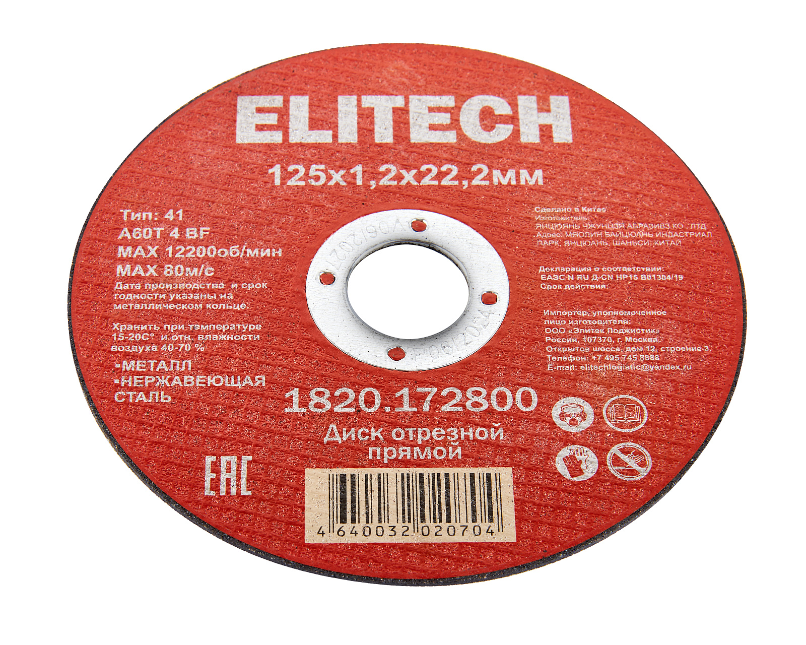 Диск отрезной125х1,6 сталь ELITECH 1820.172900 205564