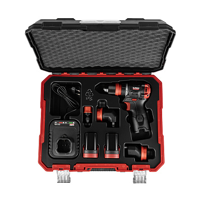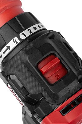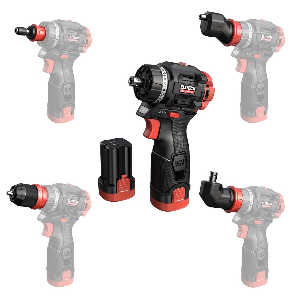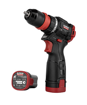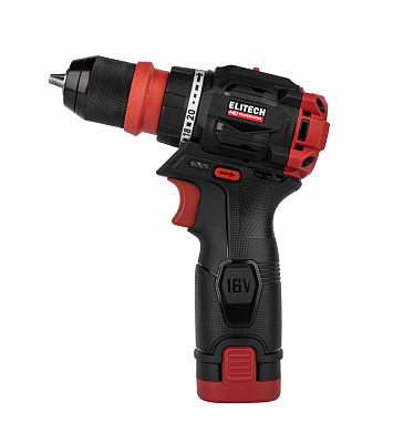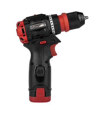 Аккумуляторная дрель-шуруповерт с Li-Ion аккумулятором напряжением 16 В и емкостью 2 Ач, с патроном Hex 1/4' для установки быстросъемных насадок, имеет две скорости (0-500 и 0-1700 об/мин), реверс, муфту ограничения крутящего момента с 20 положениями и возможностью ее отключения (для режима сверления). В комплекте имеется быстрозажимной патрон и еще три насадки. Для управления патроном одной рукой дрель имеет автоматическую блокировку шпинделя. На эргономичной рукоятке есть накладки для предотвращения проскальзывания в руке. Резиновые вставки на корпусе удерживают инструмент на наклонной плоскости и защищают поверхность, на которую кладут дрель, от возможного повреждения её корпусом дрели. Дрель также оснащена светодиодной подсветкой рабочей зоны. Шестерни в редукторе выполнены из стали. Время заряда аккумулятора штатным зарядным устройством составляет от 45 до 60 минут.