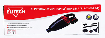 - Пылесос аккумуляторный ELITECH ПРА 18СЛ (Е1302.001.01)