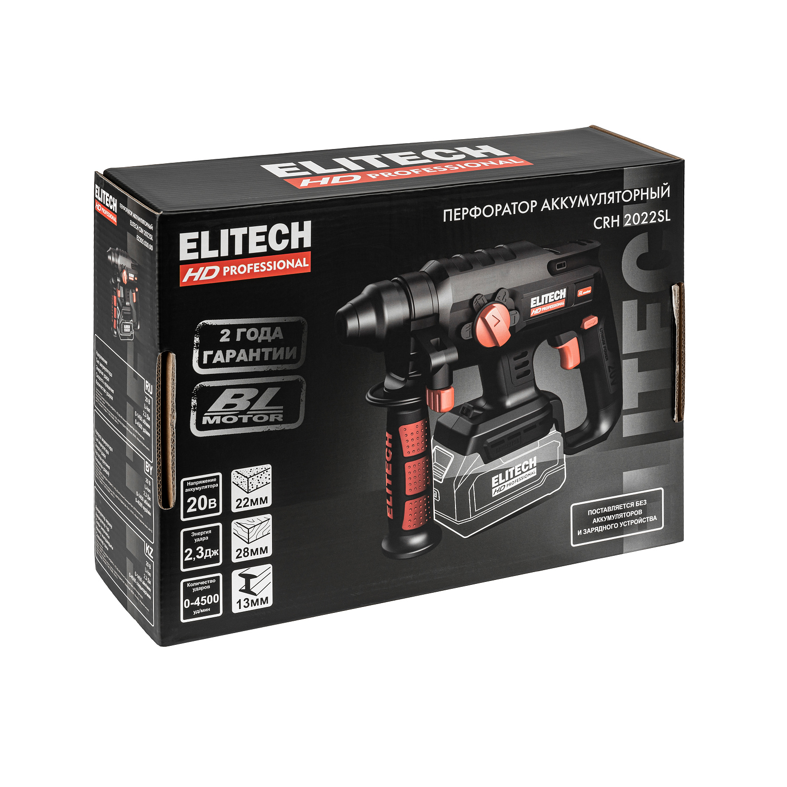 Перфоратор ELITECH HD CRH 2022SL предназначен для бурения отверстий в бетоне и аналогичных строительных материалах ударным способом, а также использования в качестве легкого отбойного молотка и дрели. Имеет три режима работы : сверление, сверление с ударом и отбойного молотка, а также 4-е положение переключателя режимов, используемое для позиционирования зубила в режиме отбойника. Поставляется без аккумулятора и зарядного устройства. Совместимый аккумулятор : 205869 ELITECH HD RCB 2020S (E0911.089.00) 2 Ач 205871 ELITECH HD RCB 2040S (E0911.091.00) 4 Ач 205872 ELITECH HD RCB 2050S (E0911.092.00) 5 Ач Совместимое зарядное устройство 205798 ELITECH HD CS 1220 (E0911.019.00) 205799 ELITECH HD CS 1222 (E0911.020.00) двойное