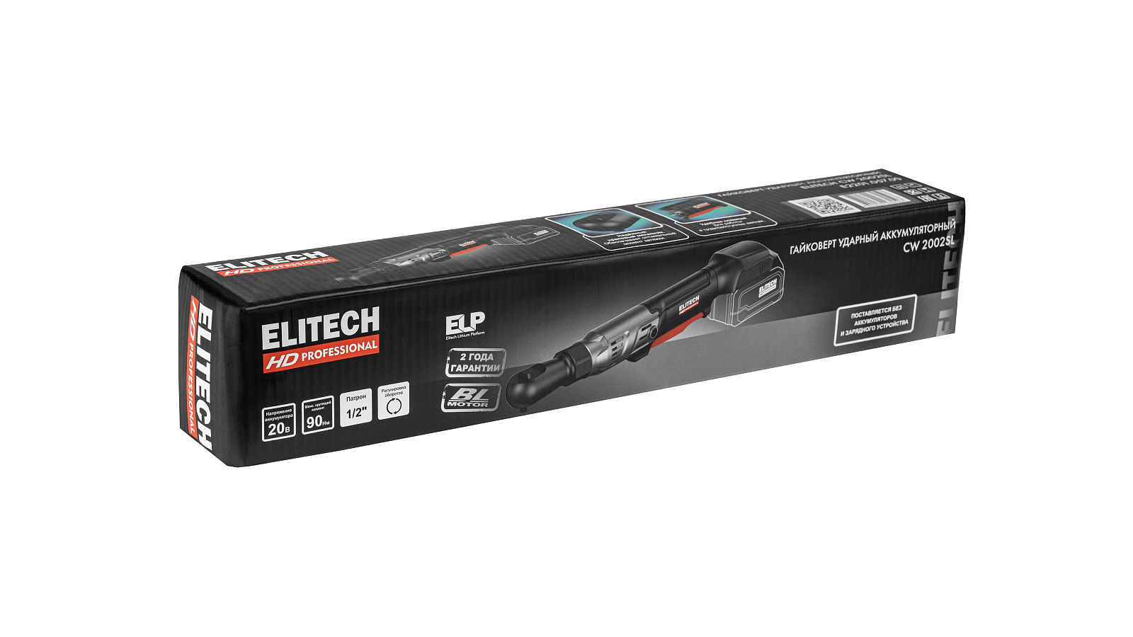 Аккумуляторный гайковерт ELITECH HD CW 2002SL с безщеточным электродвигателем напряжением 20 В, предназначен для работы с резьбовым крепежом (болты и гайки). Он обеспечивает высокий крутящий момент в 90 Нм при откручивании резьбовых соединений. Поставляется без аккумулятора и зарядного устройства. Совместимый аккумулятор : 205869 ELITECH HD RCB 2020S (E0911.089.00) 2 Ач 205871 ELITECH HD RCB 2040S (E0911.091.00) 4 Ач 205872 ELITECH HD RCB 2050S (E0911.092.00) 5 Ач Совместимое зарядное устройство 205798 ELITECH HD CS 1220 (E0911.019.00) 205799 ELITECH HD CS 1222 (E0911.020.00) двойное